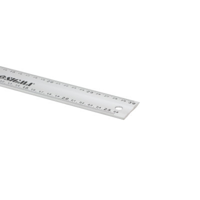 Матеріал - алюміній, шкала вимірювання - одностороння, одиниці виміру - метрична система, довжина лінійки - 300 мм, ширина лінійки - 40 мм