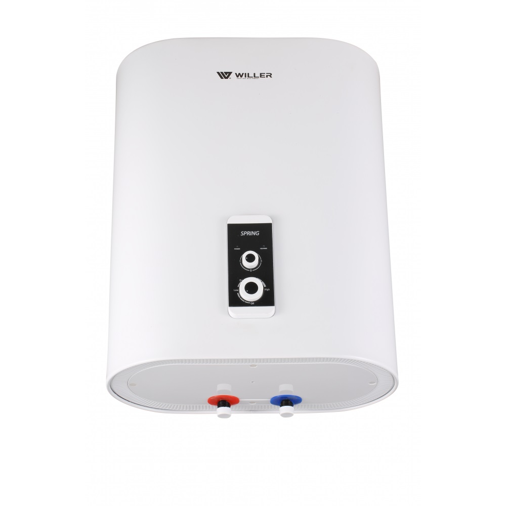 Бойлер Willer EVH100R Spring (объем 100л) - надежный плоский водонагреватель с современным дизайном: 2 бака из эмалированной стали, стальной наружный корпус покрытый эмалью, предназначен для вертикальной или горизонтальной установки, двойной погружной (мокрый) ТЭН из нержавеющей стали SS316L (на одном фланце в одном баке), выбор одного из 3-х возможных режимов мощности: 2000/1200/800Вт. Производство - Китай. Кроме самого бойлера в комплект поставки входит многофункциональный предохранительный клапан, комплект крепления на стену, шнур питания, руководство по эксплуатации на украинском языке, гарантийный талон.