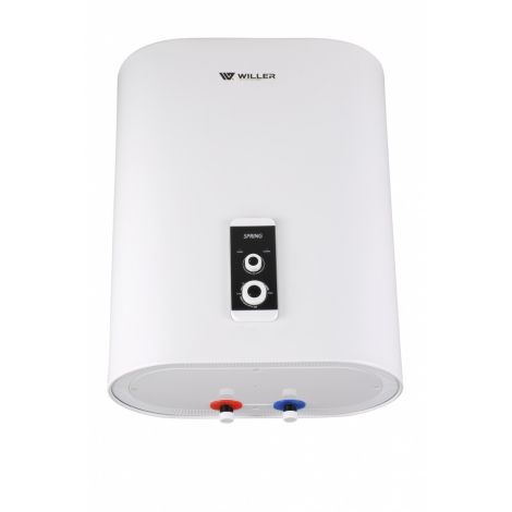 Бойлер Willer EVH50R Spring (объем 50л) - надежный плоский водонагреватель с современным дизайном: 2 бака из эмалированной стали, стальной наружный корпус покрытый эмалью, предназначен для вертикальной или горизонтальной установки, двойной погружной (мокрый) ТЭН из нержавеющей стали SS316L (на одном фланце в одном баке), выбор одного из 3-х возможных режимов мощности: 2000/1200/800Вт. Производство - Китай. Кроме самого бойлера в комплект поставки входит многофункциональный предохранительный клапан, комплект крепления на стену, шнур питания, руководство по эксплуатации на украинском языке, гарантийный талон.