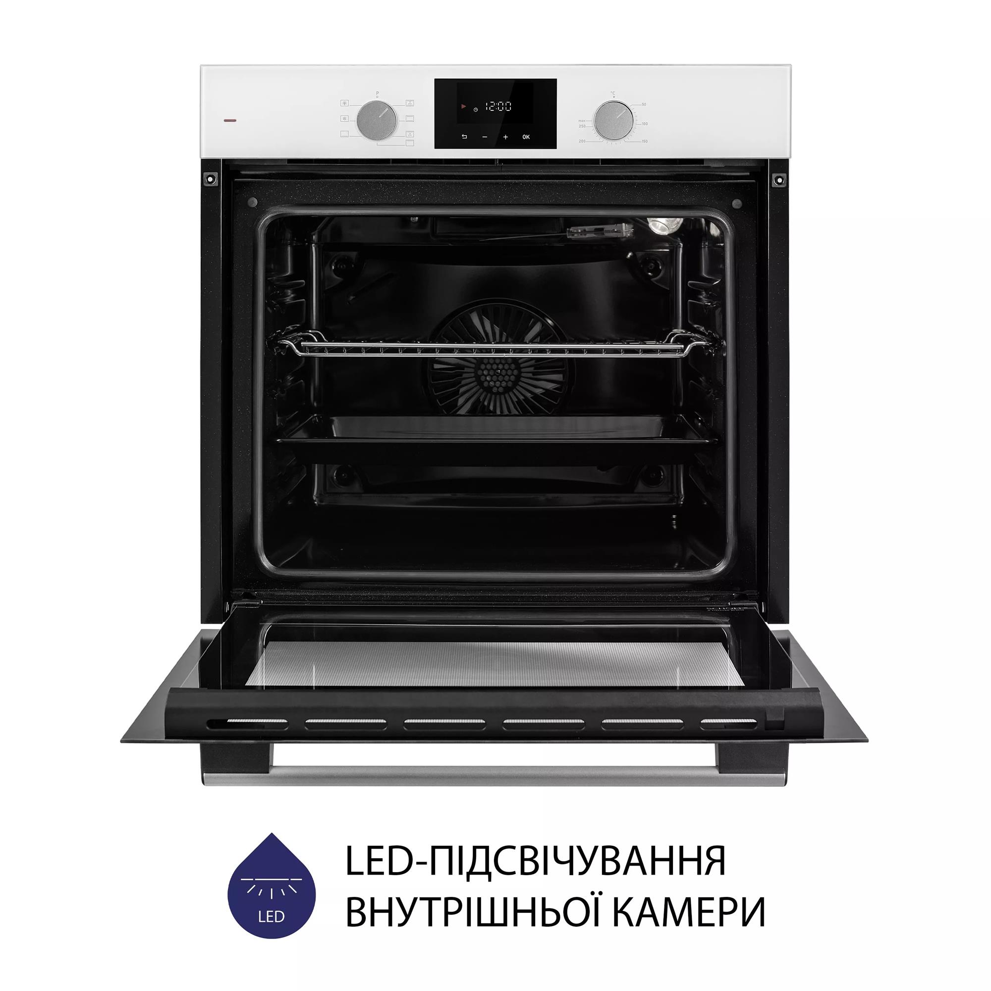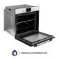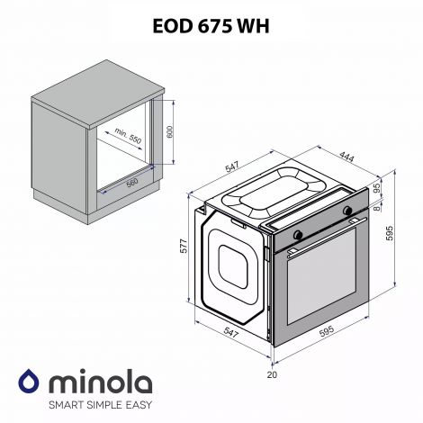 Електрична духова шафа Minola EOD 675 — втілення сучасних технологій Вбудована духова шафа поєднує в собі стильний зовнішній вигляд, зручність у використанні та мультифункційність. 7 найбільш необхідних режимів для приготування Модель має 7 різних програм для реалізації різноманітних рецептів. Додаткові функції духової шафи включають конвекцію й таймер, що дозволяє вам налаштовувати час і температуру для оптимального приготування. Окрім того, модель доповнена системою тангенціального охолодження. Воно виводить зайве тепло за допомогою вентилятора та захищає меблі від впливу конденсату. Корисний об’єм внутрішньої камери та покриття Easy Clean Простора внутрішня камера об’ємом 72 л вкрита інноваційною антипригарною емаллю. Вона забезпечує легке очищення від жирів та інших забруднень. Очищення відбувається наступним чином: налийте воду у деко, увімкніть нижній нагрів та встановіть температуру на 100 °C. Утворена пара розщеплює жир та бруд всередині камери, а залишки можна протерти губкою, використовуючи звичайні миючі засоби без абразивів. 5 рівнів рельєфних напрямних і аксесуари в комплектації Модель укомплектована універсальним деком, решіткою та обладнана п’ятьма рівнями напрямних. Вони дозволяють регулювати відстань між стравами, забезпечують рівномірне приготування та надійне положення аксесуарів. Залежно від технології готування страв, ви можете обирати потрібний рівень напрямних або готувати декілька страв одночасно. Дверцята з подвійним склінням від провідного бренду SCHOTT Дверцята духової шафи мають подвійне скло від німецького бренду SCHOTT, яке забезпечує ефективну термоізоляцію. Воно зберігає тепло всередині камери, знижує споживання електроенергії та захищає від опіків. Скло можна легко вилучити. Просто натисніть спеціальні кнопки з обох боків дверцят. Це значно спрощує процес очищення. Сучасна та мультифункційна панель управління Керування духовою шафою реалізоване у вигляді поворотних утоплюваних ручок з термостійкого пластику та сучасного дисплея. Ручки дозволяють легко та безпечно обирати режими та температуру, а дисплей — налаштовувати час, таймер та звукові сповіщення.