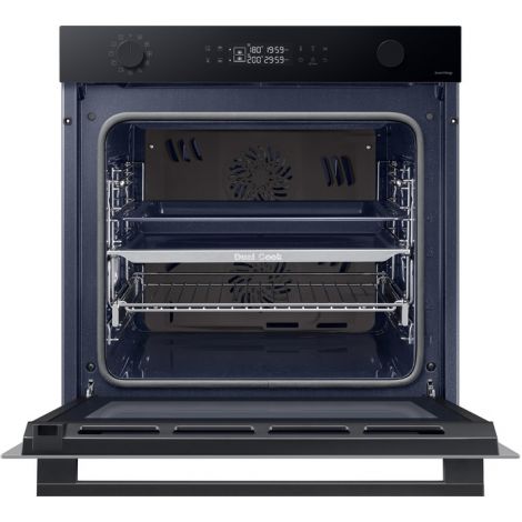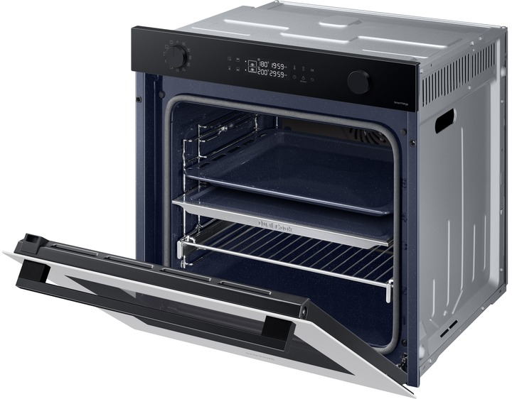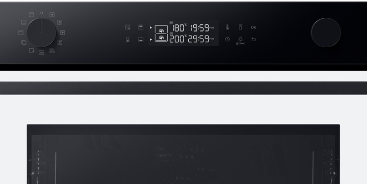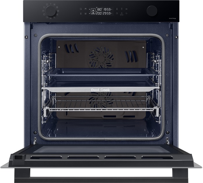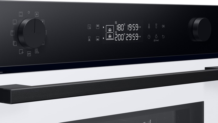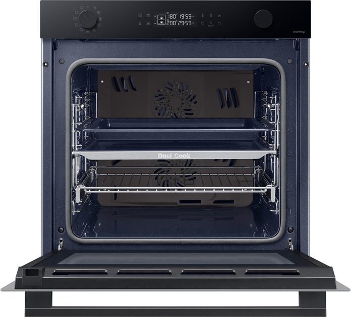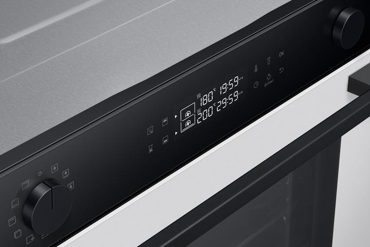 Одна піч, три способи використання Виберіть спосіб приготування різних страв, щоб досягти оптимальних результатів. Верхня та нижня зони Dual Cook працюють незалежно одна від одної або разом. Використовуйте верхню зону для приготування невеликих страв, обидві зони разом, щоб готувати різні страви з різними налаштуваннями та досягати смачних результатів, або всю піч для приготування великих страв. Ідеально рівномірне приготування їжі Готуйте їжу більш рівномірно, не пересмажуючи та не пересушуючи її. Технологія Air Sous Vide точно визначає температуру в кожній зоні та підтримує її рівномірність протягом тривалого часу. Таким чином, всі страви ретельно просмажуються та мають ніжний та соковитий смак. Більше радощів, менше клопоту SmartThings Cooking Готові до нових вражень на власній кухні? SmartThings Cooking заощадить час і мінімізує клопоти, пов’язані з приготуванням їжі. Застосунок рекомендує персоналізовані рецепти і створює тижневий план харчування з огляду на ваші потреби. Також надає поради по приготуванню їжі і дозволяє швидко й легко робити покупки. Знадобиться бездротова мережа, обліковий запис Samsung та застосунок SmartThings. Застосунок SmartThings підтримує Android OS 8.0 (Oreo) або новішої версії, оптимізованої для смартфонів Samsung. Цей застосунок також підтримує iOS 13 або новішу версію для моделей iPhone. Застосунок SmartThings доступний в App Store та Play Store. Доступний певними мовами, зокрема англійською, французькою, німецькою, італійською та іспанською. Доступний лише у Великобританії та Німеччині. Незабаром будуть додані інші країни. Легке самоочищення Досить витрачати час і сили на миття духовки. Система каталітичного очищення дозволяє легко підтримувати чистоту духовки. Каталітична поверхня в задній частині робочої камери абсорбує жир від бризок і крапель під час приготування страв. Завдяки цьому духовка очищається сама, без жодного клопоту і дорогих мийних засобів. Закривається плавно, м’яко і безшумно Насолоджуйтеся комфортнішим процесом приготування їжі завдяки дверцятам з плавним механізмом зачинення. Завдяки цьому духовка закривається надійно, м’яко і безшумно. Шарнір забезпечує плавний рух дверцят, тому вони повільно і безшумно зачиняються, без вібрації й стуку. Готуйте набагато більше Готуйте більше страв великими порціями завдяки вмісткій духовій шафі обсягом 76 літрів. Отримуйте безліч можливостей у розвитку кулінарних здібностей у себе вдома. Тепер можна готувати багато різних страв одночасно, наприклад, для вечірки. І, звісно, духовка легко вміщує об’ємні страви, такі як величезна індичка для сімейних свят. Енергоефективність A+ без компромісів Зробіть дім енергоефективнішим. Ви можете використовувати весь обсяг духової шафи й насолоджуватися винятковою енергоефективністю класу А+ в ECO-режимі. У такий спосіб ви використовуєте меншу потужність, зберігаючи при цьому великий і гнучкий простір духової шафи для власних потреб. Щобільше, цей режим зменшує шкідливі викиди CO2. Висувне деко Тепер діставати страви з духовки набагато легше. Телескопічні напрямні дозволяють легко діставати великі або важкі сковорідки. Телескопічні напрямні створюють набагато менше тертя, тому духовку набагато легше завантажувати та вивантажувати. І ви зможете легко змащувати, перевертати та приправляти страви.