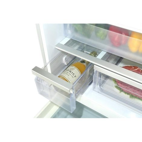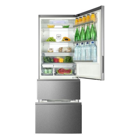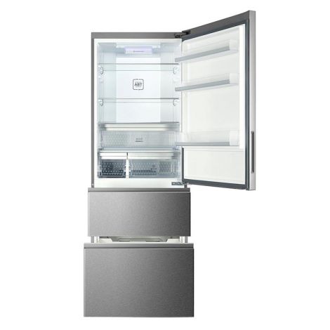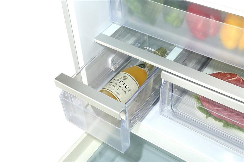 Тип: холодильник с морозильником; Класс энергопотребления: A++; Управление: электронное; Количество компрессоров: 1; Общий объем: 436 л; Объем холодильной камеры: 307 л; Объем морозильной камеры: 129 л; Функциональные возможности: Антибактериальная защита, Режим отпуска, Освещение морозильной камеры, Функция суперзамораживания, Регулируемые ножки, Звуковой и световой сигнал о превышении температуры в х/о, Функция суперохлаждения; Цвет: нержавеющая сталь; Габариты (ВхШхГ): 190 х 70 х 67.6; Вес: 105 кг;