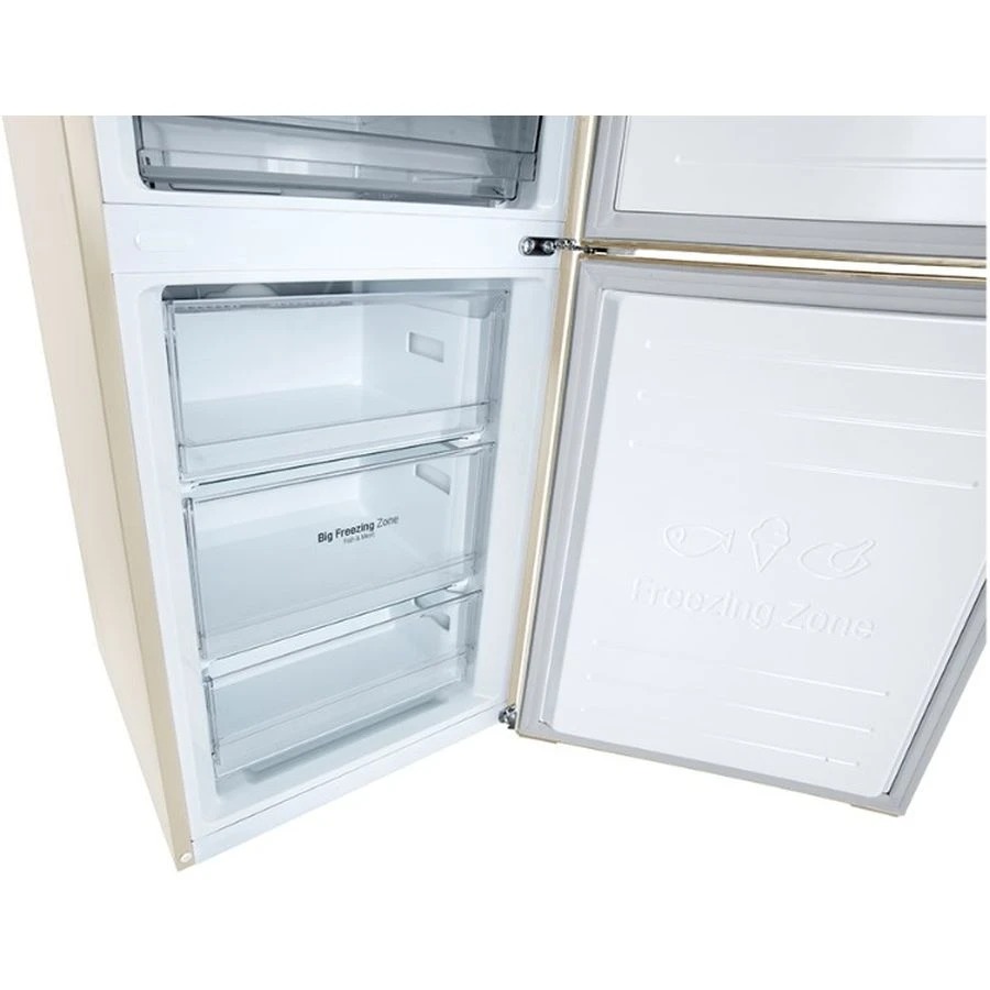 Технологія DoorCooling+ До 32% швидше та рівномірніше охолодження в будь-якому відсіку холодильника Вентиляційні отвори, розташовані в передній частині холодильника, допомагають підтримувати температуру на належному рівні, щоб продукти залишалися свіжими. Тиха робота Рівень шуму в нових холодильниках LG DoorCooling+ 36 дБ, що на 25% нижче, ніж у попередніх моделях. Тиха та надійна робота, щоб нічого не порушувало Вашого спокою вдома. Оптимальний рівень вологості За допомогою простого перемикача FRESHBalancer легко підтримувати оптимальний рівень вашої вологості. фрукти та овочі. Клас енергоефективності А++ Холодильник LG з інверторним компресором має рівень енергоефективності А++ і споживає на 32% менше електроенергії. Multi Air Flow Холодне повітря циркулює через усі повітряні клапани та рівномірно охолоджує холодильне відділення. Технологію циркуляції холодного повітря значно поліпшено порівняно з тими, що працюють на холодильниках системі Total No Frost. Total No Frost Холодильники з технологією LG Total No Frost більше не потребують розморожування холодильної та морозильної камер. Moist Balance Crisper Завдяки комірчастій структурі кришки Moist Balance Crisper конденсат накопичується в стільниках, запобігаючи потраплянню крапель у продукти. Водночас вода повільно випаровується, створюючи оптимальний рівень вологості. Це дає змогу зберегти фрукти й овочі набагато довше за збереження їхніх корисних властивостей і смакових якостей.
