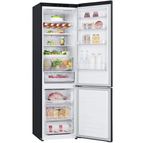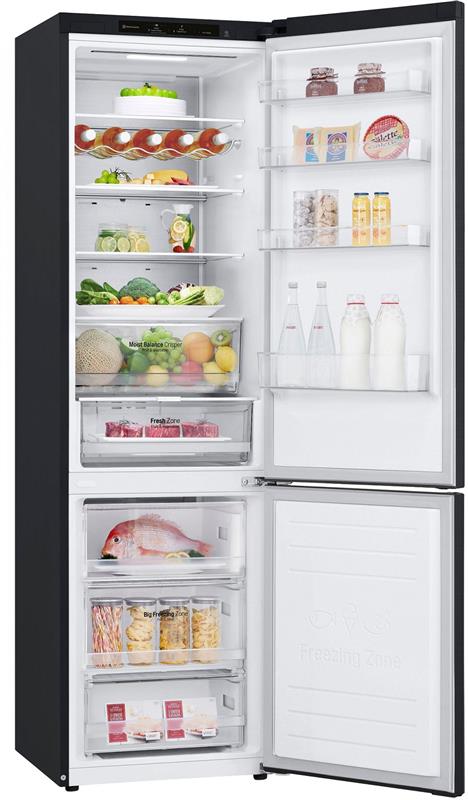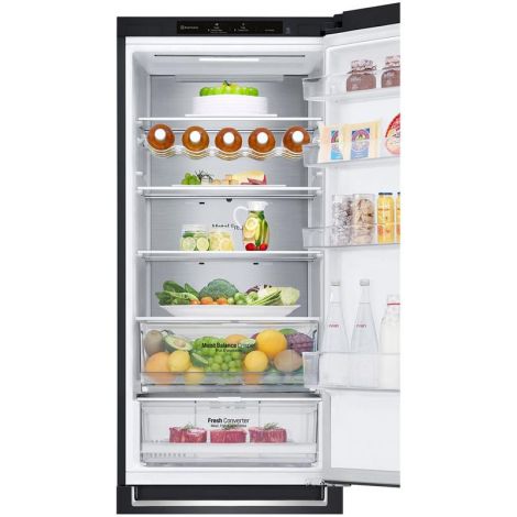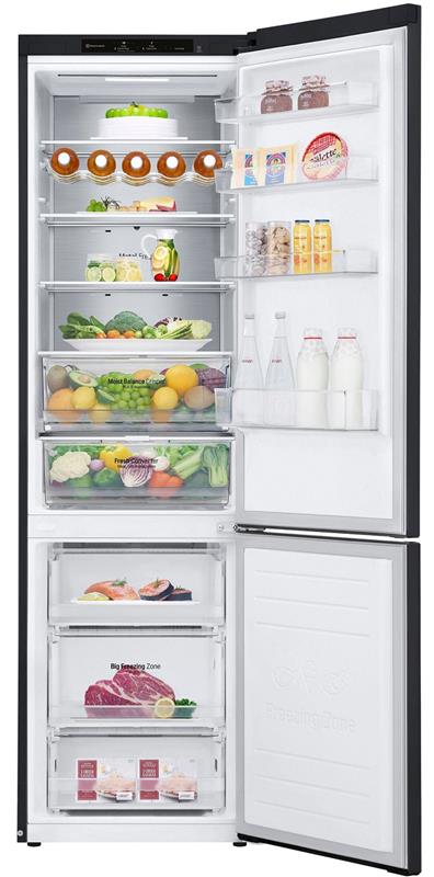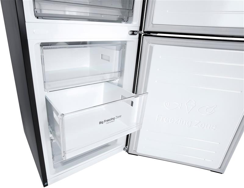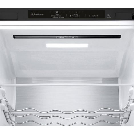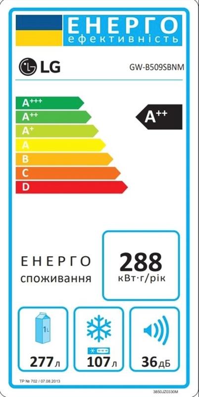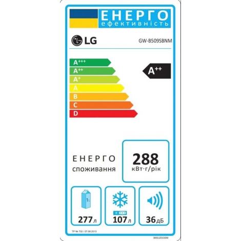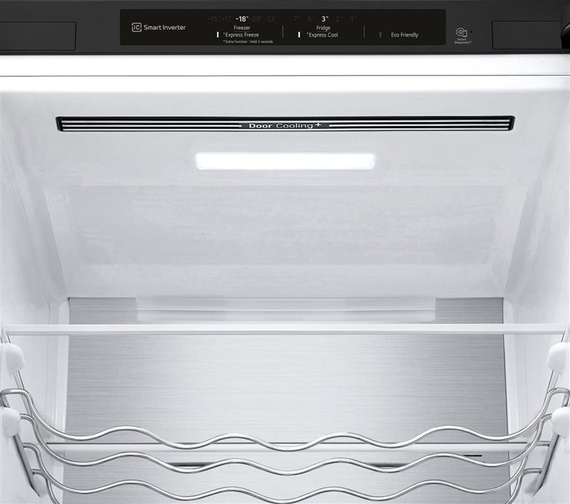 Технологія DoorCooling+. Вентиляційні отвори, розташовані в передній частині холодильника, допомагають підтримувати температуру на належному рівні, щоб продукти залишалися свіжими. Тиха робота. Рівень шуму в нових холодильниках LG DoorCooling+ 36 дБ, що на 25% нижче, ніж у попередніх моделях. Безшумна та надійна робота, щоб нічого не порушувало вашого спокою вдома. Smart Inverter компресор. Smart Inverter компресор вирізняється економічністю та меншим рівнем шуму порівняно з моделями зі звичайним компресором. Клас енергоефективності А++. Холодильник LG з інверторним компресором має рівень енергоефективності А++ і споживає на 32% менше електроенергії. Multi Air Flow. Холодне повітря циркулює через усі повітряні клапани і рівномірно охолоджує холодильне відділення. Технологію циркуляції холодного повітря значно вдосконалено порівняно з холодильниками, що працюють на стандартній системі No Frost. Total No Frost. Холодильники з технологією LG Total No Frost більше не потребують розморожування холодильної та морозильної камер. Металева пластина. Металева пластина на задній стінці слугує додатковим джерелом охолодження, а також підкреслює мінімалізм і вишуканий дизайн холодильника. Оптимальна температура для різних продуктів. Різні продукти вимагають різних температурних режимів зберігання. За допомогою FRESHConverter можна вибрати один із трьох температурних режимів (-2°C: М’ясо/0°C: Риба/3°C: Овочі). Moist Balance Crisper. Завдяки комірчастій структурі кришки Moist Balance Crisper конденсат накопичується в стільниках, запобігаючи потраплянню крапель на продукти. Водночас вода повільно випаровується, створюючи оптимальний рівень вологості. Це дає змогу зберегти фрукти й овочі свіжими набагато довше за збереження їхніх корисних властивостей і смакових якостей. Збільшена полиця для пляшок вина. Якщо ви справжній поціновувач вина, то зручна винна полиця - це те, що вам потрібно. Тепер вона дає змогу зберігати до 5 пляшок. Big Freezing Zone. Для ефективного зберігання м’яса та риби в морозильних камерах холодильників LG передбачено окреме відділення. Smart Diagnosis. Технологія LG Smart Diagnosis™ допомагає швидко і правильно виявити проблему в роботі холодильника без необхідності виклику фахівця з сервісного центру додому. Нульовий зазор. Удосконалена конструкція дверцят холодильника дає змогу відчиняти їх під прямим кутом (90°) без виступів за габарити холодильника за шириною та забезпечує легкий доступ до всіх полиць у холодильному та морозильному відділеннях. Навіть на невеликих кухнях двері холодильника не вдарятимуться об стіни. Технологія контролю напруги. Надійна система контролю напруги дає змогу холодильнику LG продовжувати працювати в разі перепаду напруги від 187 до 253 Вольт. Захист від пікових навантажень до 400 Вольт.
