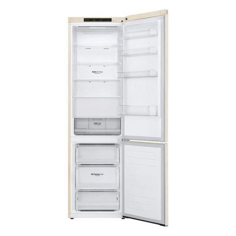 Тиха робота Рівень шуму у нових холодильниках LG DoorCooling+ 36 дБ, що на 25% нижче, ніж у попередніх моделях. Безшумна та надійна робота, щоб нічого не порушувало вашого спокою вдома. Технологія DoorCooling+ Технологія DoorCooling+ довше зберігає свіжість будь-яких продуктів та страв. Smart Inverter компресор Smart Inverter компресор відрізняється економічністю та меншим рівнем шуму в порівнянні з моделями зі звичайним компресором. Клас енергоефективності А++ Холодильник LG з інверторним компресором має рівень енергоефективності А++ та споживає на 32% менше електроенергії. Multi Air Flow Холодне повітря циркулює через усі повітряні клапани та рівномірно охолоджує холодильне відділення. Технологія циркуляції холодного повітря значно покращена порівняно з холодильниками, що працюють за стандартною системою No Frost. Total No Frost Холодильники з технологією LG Total No Frost більше не вимагають розморожування холодильної та морозильної камер. Big Freezing Zone Для ефективного зберігання м’яса та риби в морозильних камерах холодильників LG передбачено окреме відділення. Smart Diagnosis Технологія LG Smart Diagnosis допомагає швидко та правильно виявити проблему в роботі холодильника без необхідності виклику фахівця із сервісного центру додому. Нульовий зазор Удосконалена конструкція дверцят холодильника дозволяє відкривати її під прямим кутом (90°) без виступів за габарити холодильника по ширині і забезпечує легкий доступ до всіх полиць в холодильному та морозильному відділеннях. Навіть на невеликих кухнях двері холодильника не вдаряться об стіни. Технологія контролю напруги Надійна система контролю напруги дозволяє холодильнику LG продовжувати працювати при перепаді напруги від 187 до 253 Вольт. Захист від пікових навантажень до 400 Вольт.