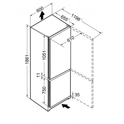 | Особенности | защита от детей, режим быстрой заморозки, сигнализация открытой двери, интегрированные вертикальные ручки, регулировка температуры морозильного отделения, внутреннее освещение, индикация неисправности, регулировка температуры холодильного отделения |