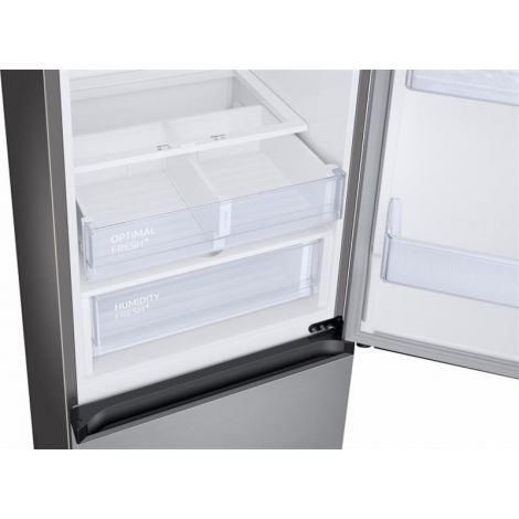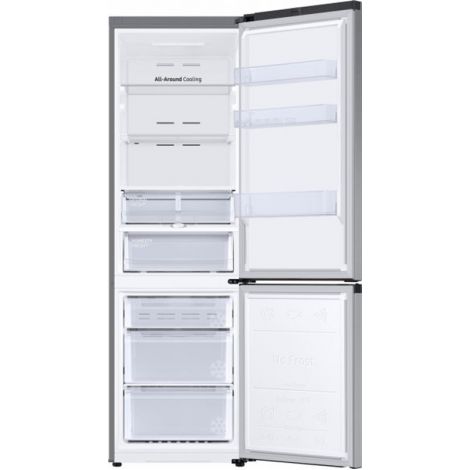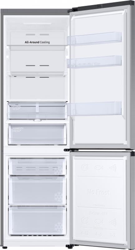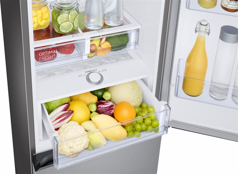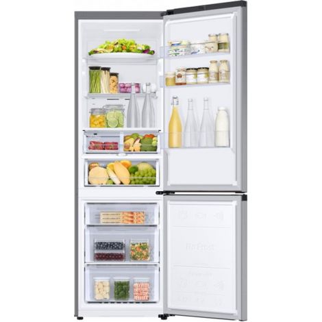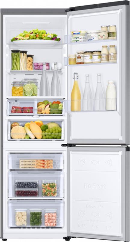 Дизайн по технологии SpaceMax Technology Холодильник Samsung с нижней морозильной камерой изготовлен по технологии Space Max Technology, поэтому имеет эффективную теплоизоляцию стенок уменьшенной толщины. Это позволяет сохранить внешние размеры прибора, расширяя при этом его внутренний объем. Таким образом, данная модель отличается от других холодильников такого же размера увеличенным полезным объемом и высоким уровнем энергоэффективности. Система All-Around cooling Все уголки рабочей камеры холодильника охлаждаются тщательно и равномерно, ведь модель поддерживает технологию All-Around cooling. Система обеспечивает подачу охлажденных потоков воздуха через отверстия над каждой полкой, поэтому внутри прибора поддерживается стабильный климат, а продукты остаются свежими дольше. Технология No Frost Холодильник с нижней морозильной камерой Samsung снижает температуру по технологии No Frost, поэтому выгодно отличается от моделей без такой системы. No Frost обеспечивает вентилируемое охлаждение, благодаря которому регулируется уровень влажности, отсутствует конденсат, иней, наледь, сторонние запахи и существенно продлевается срок службы холодильника. Зона свежести Fresh Zone Для хранения овощей, фруктов, рыбы и мяса в холодильнике предусмотрена отдельная зона с оптимальным климатом для таких продуктов. В левой части Зоны Свежести более низкий уровень температуры, что отлично подходит для продления свежести мяса и рыбы. В правой части Fresh Zone температурный режим лучше подходит для сохранения овощей и фруктов. Ящик с контролем влажности Humidity Fresh+ Продляйте свежий вкус, запах и текстуру продуктов, сохраняя их в специальном ящике Humidity Fresh+. Повернув ручку, вы запустите процесс контроля влажности, что обеспечит идеальные условия для хранения разных элементов питания. Функции Power Cool и Power Freeze Чтобы быстро охладить продукты в холодильной камере, воспользуйтесь функцией Power Cool, а, чтобы заморозить ингредиенты в краткий промежуток времени — активируйте опцию Power Freeze. При выборе данных функций вы запустите интенсивную подачу холодного воздуха и снижение температуры, обеспечивая ускоренное охлаждение или заморозку.