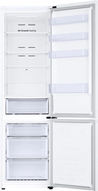 Обсяг більший, розмір той самий! Технологія SpaceMax Зберігайте більше продуктів за допомогою технології SpaceMax, яка дає змогу домогтися більшого корисного внутрішнього об’єму, завдяки тонким стінкам із теплоізоляцією, водночас не знижуючи енергоефективність холодильника. Охолодження з усіх боків Технологія дає змогу рівномірно охолоджувати куточки робочої камери. Охолоджене повітря циркулює через вентиляційні отвори, що мають виходи на кожну полицю, завдяки чому в холодильнику підтримується постійна температура і продукти залишаються свіжими. Забудьте про утворення криги Технологія No Frost запобігає утворенню криги на стінках холодильника та забезпечує підтримання постійної температури в кожному куточку камери. Крім того, ця система прискорює охолодження робочих камер, завдяки чому зменшується навантаження на систему охолодження. Потужне охолодження або заморожування Скористайтеся опцією швидкого охолодження, яка допомагає швидше охолодити будь-які продукти. Швидке заморожування за рахунок інтенсивного потоку холодного повітря дає змогу швидше виробляти лід і здійснювати глибоке заморожування. Ще більше простору Зберігайте більше продуктів у дверних кишенях, не витрачаючи простір усередині полиць. Широкі та глибокі дверні кишені дадуть змогу безпечно зберігати більше пляшок, картонних пакетів та інших об’єктів у постійному доступі без необхідності брати їх із полиці. Працює розумно, служить довго Інверторний компресор автоматично регулює швидкість роботи залежно від потреби охолодження. У результаті холодильник споживає менше електроенергії, працює тихо (35 дБ) і служить довго. Чистота, надійність і захист Очистити задню стінку вашого холодильника ще простіше. Захисний короб захищає кабелі та легко піддається очищенню, тож можна не переживати за комплектуючі холодильника.