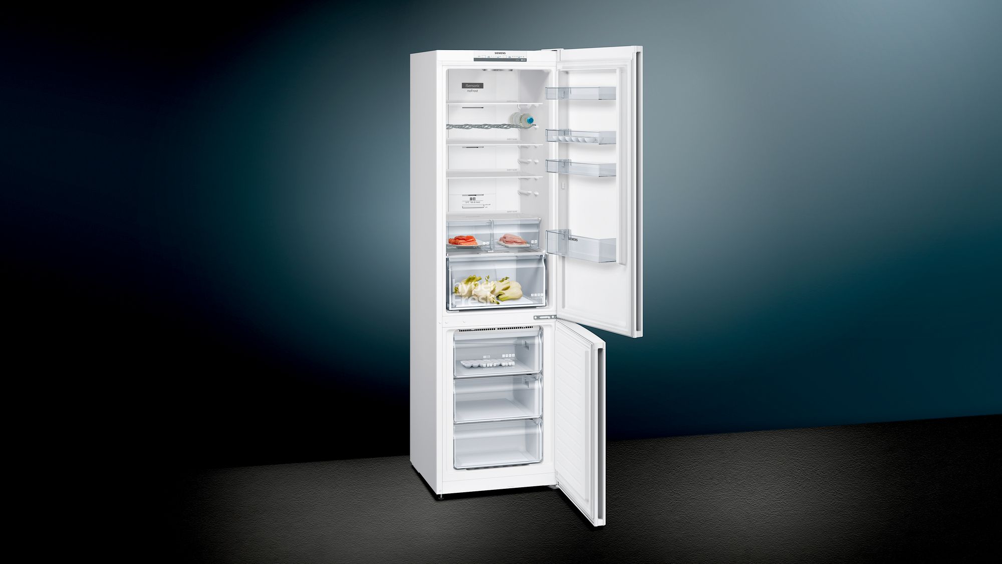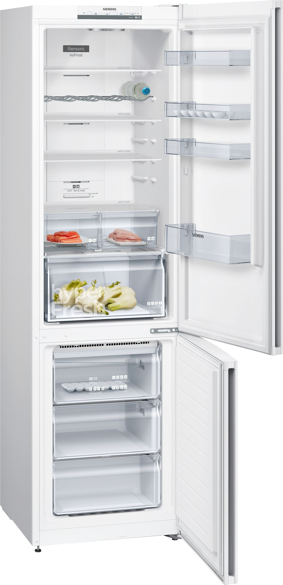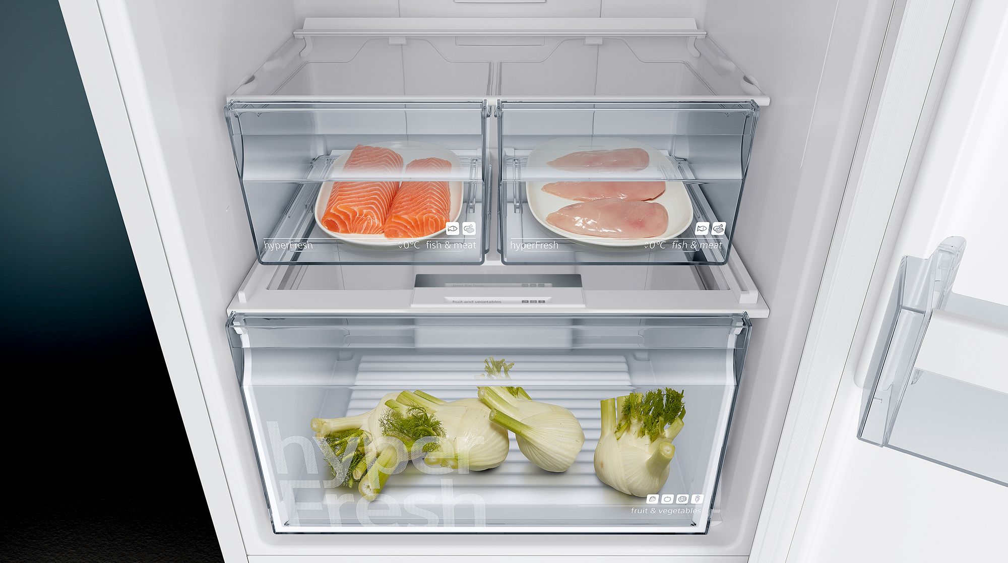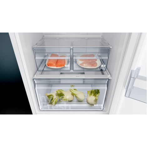 Холодильник с зоной свежести hyperFresh Box для еще более длительного хранения овощей и фруктов, а также технология noFrost - обременительное размораживание останется в прошлом Особенности: Овощи и фрукты остаются дольше свежими благодаря зоне свежести hyperFresh Температура в зоне свежести HyperFresh 0 ° С ниже, чем в холодильной камере, которая является оптимальным условием для хранения рыбы и мяса Премиальное LED освещения Угол открытия дверц 90°: идеальная установка у любой стены, максимум комфорту и гибкости varioZone: возможность индивидуальной компоновки пространства морозильного отделения