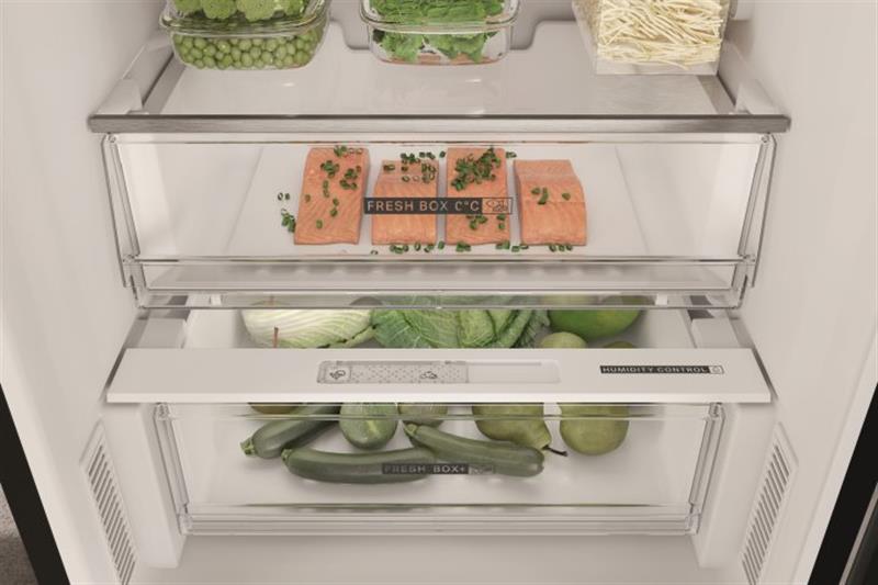 Насолоджуйтесь неймовірною свіжістю та якістю продуктів! Холодильник Whirlpool W7X82OK з нижньою морозильною камерою: з системою охолодження Total NoFrost. З технологією Total NoFrost у холодильнику Whirlpool повітря в морозильній камері автоматично осушується, завдяки чому не потрібно витрачати час на розморожування. Крім того, заморожені продукти не прилипають до стінок, етикетки залишаються розбірливими, а місце для зберігання продуктів - чистим. Датчики 6th Sense виявляє найменші зміни температури і вологості та негайно відновлює їхній рівень одразу після того, як Ви покладете продукти в холодильну камеру і закриєте дверцята. Whirlpool W7X82OW має клас енергоефективності А++, що забезпечить якісні результати в поєднанні з низьким рівнем енергоспоживання. Користуйтеся перевагами швидкого доступу до продуктів завдяки спеціальній полиці простого доступу на напрямних, вона висувається таким чином, що дає змогу швидко дістати ті продукти, які Ви найчастіше використовуєте. Total No Frost Система вентиляції забезпечує ідеальну циркуляцію холодного повітря в обох відділеннях, запобігаючи конденсації та утворенню льоду. 15 років додаткової гарантії на компресор. Він настільки ефективний, що має 15-річну гарантію виробника. Зареєструйтеся, щоб активувати. Вам більше ніколи не доведеться розморожувати холодильник вручну. Вентиляційна система забезпечує ідеальну циркуляцію холодного повітря в обох відділеннях, запобігаючи конденсації та утворенню льоду. Завдяки цьому Ви отримуєте: Ідеальні умови для більш тривалого зберігання їжі Порожнину морозильної камери без утворення льоду, тому ящики легко ковзають. Технологія Cool Breeze Постійний потік повітря в холодильнику, забезпечує стабільну температуру на кожній полиці для ідеальної свіжості продуктів. Зберігайте продукти в холодильнику в будь-якому зручному для вас місці. Покращений дизайн задньої стінки холодильника - ширші й оптимально розташовані отвори впускають холодне повітря у відділення. У результаті температура на кожній полиці постійна і рівномірна (добові коливання температури становлять лише 0,2°C). Технологія 6th Sense 6th Sense Control постійно виявляє коливання температури та швидко відновлює ідеальну температуру для оптимального зберігання продуктів. Дизайн Гнучкі можливості організації простору в дверях Швидке заморожування Швидке й оптимальне заморожування, ідеально підходить для розміщення дуже великої кількості продуктів у морозильній камері. Сигнал відкритих дверей Індикатор, що вказує, якщо сталася помилка або дверцята приладу залишилися відчиненими. Перенавішувані двері Легко змінюйте напрямок відкривання дверей. За замовчуванням дверцята відчиняються з правого боку, але за потреби їх можна змінити на протилежний бік, якщо це найкраще підходить для вашої кухні. Коли виріб повністю встановлено, максимальний кут відкриття становить від 90 до 95 градусів.