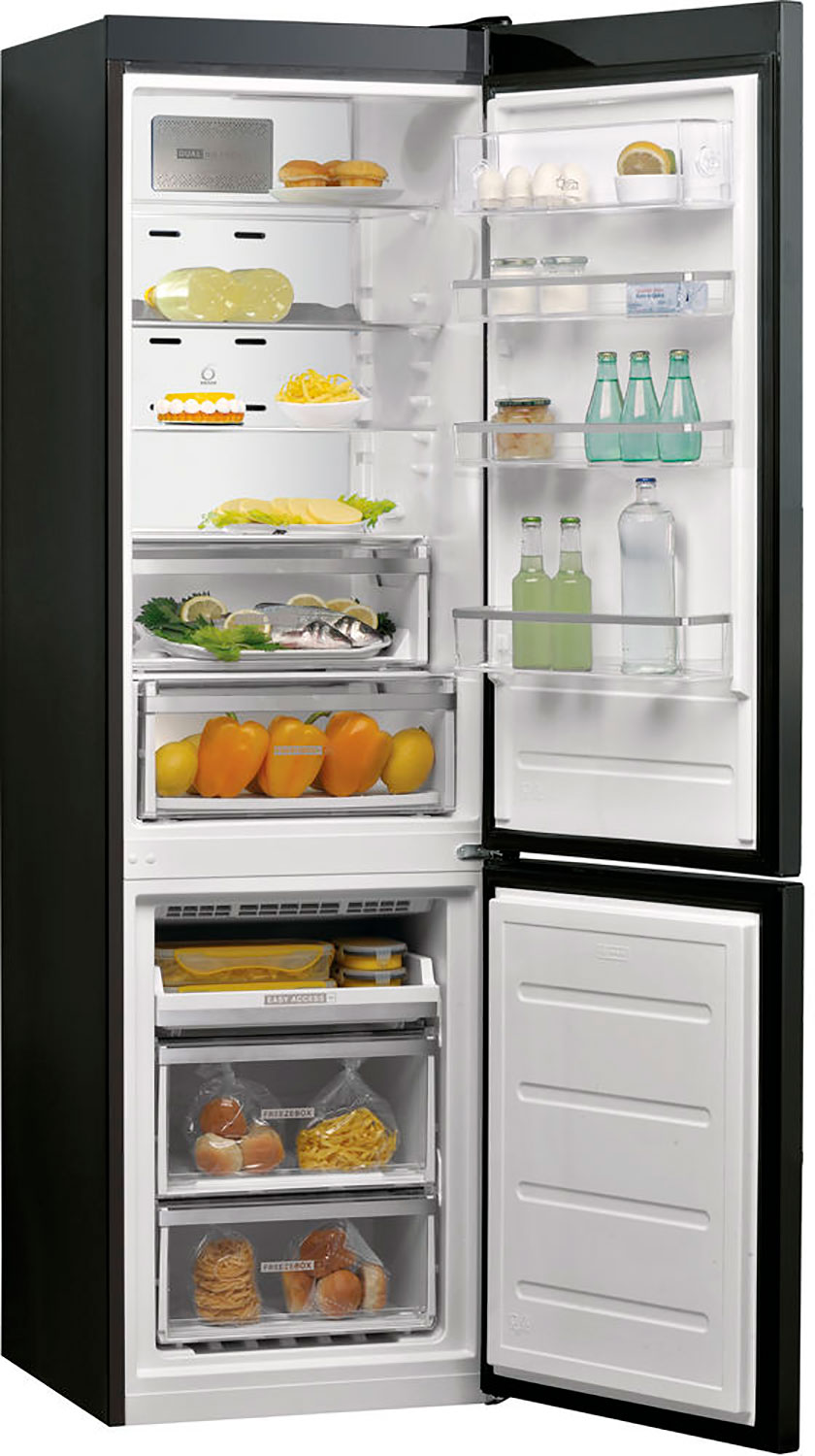 Dual No Frost Система охлаждения Dual No Frost- для непревзойденной свежести продуктов. Наслаждайтесь невероятной свежестью и качеством продуктов! Две независимые системы охлаждения No Frost предотвращают смешивание запахов между холодильной и морозильной камерами. Таким образом, сухой воздух из морозильника не вредит свежести продуктов в холодильной камере. 6th Sense Precision Control Технология, которая быстро восстанавливает температуру и идеальный уровень влажности в холодильнике. 6th Sense Precission Control - поддерживайте постоянную влажность и температуру. Теперь Вы можете размещать овощи и фрукты в любом месте холодильной камере до 15 суток без риска пересушивания. 6th Sense обнаруживает малейшие изменения температуры и влажности и немедленно восстанавливает их уровень сразу после того, как Вы положите продукты в холодильную камеру и закроете дверцу. Отделение свежести Fresh Box+ со слайдером влажности Фрукты и овощи останутся свежими до 15 дней. Ящик со слайдером влажности, который позволит Вам поддерживать первозданную свежесть фруктов и овощей до 15 дней. Отделение свежести с Fresh-подставкой Отныне вашим овощам и фруктам не угрожают вредоносные бактерии благодаря специальному отделению с Fresh-подставкой. Она гарантирует наилучшее сохранение ваших фруктов и овощей, благодаря отводу остаточной влаги и минимизируя образования до 99,9% вредных бактерий. Freeze Control Заморозка без лишних хлопот. Эта морозильная камера Whilrpool оснащена инновационной технологией FreezeControl, эффективно защищает вкус и внешний вид продуктов и снижает морозный ожог до 50%. Полка 2 В 1 Полка 2 в 1 для хранения бутылок или продуктов. Новая полка для бутылок размещается у заднего края одной из основных полок, обеспечивая дополнительный комфорт и безопасность в их хранении. Кроме того, при необходимости Вы сможете легко достать фиксатор для бутылок и использовать ее как обычную полку для хранения продуктов. Полка простого доступа Пользуйтесь преимуществами быстрого доступа к продуктам благодаря полке простого доступа Получите быстрый доступ к продуктам, которыми вы пользуетесь чаще всего, и не забывайте о тех продуктах, которые вы храните "на следующую неделю". Система No Frost Разморзка больше не нужна. Система Total NoFrost снижает уровень влажности в морозильной камере, предотвращая образование инея. Вентиляция Эта модель холодильника с нижней морозильной камерой Whirlpool оснащена системой вентиляции, которая обеспечивает равномерное распределение охлажденного воздуха по всей камере. Энергосбережение Сверхбыстрое восстановление температуры. Инновационная технология энергосбережения (EnergySaving) обеспечивает чрезвычайно быстрое восстановление температуры, таким образом обеспечивая низкий уровень энергопотребления и долговременную свежесть продуктов.
