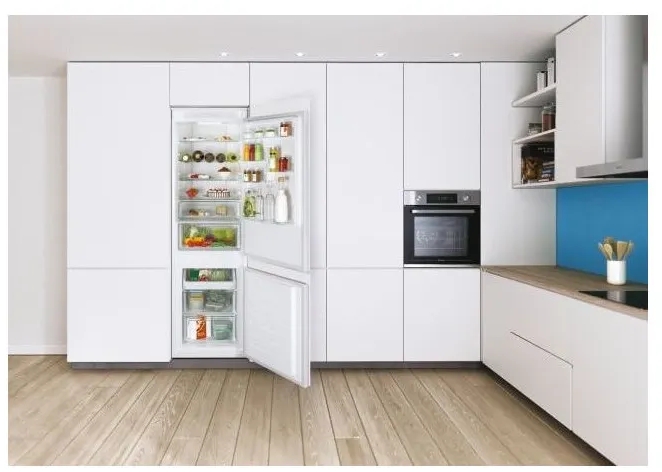 Виберіть правильну температуру Роздільний контроль температури в холодильнику та морозильній камері завдяки інтуїтивно зрозумілій вбудованій панелі керування. Ви можете самостійно встановити температуру холодильника (від 2° до 8°) та морозильної камери (від -16° до -24°), легко активувати всі його режими (наприклад, «Відпустка» та «Суперохолодження») та підключити його до мережі Wi -Fi. мережі та використовуйте додаток hOn. Світ віддалених функцій Чому б не використовувати свій холодильник максимально? Завантажте програму hOn і відкрийте для себе повний набір віддалених функцій, що полегшують ваше повсякденне життя. Керуйте своїм холодильником віддалено за допомогою смартфона та користуйтеся безліччю функцій, таких як Inventory Assistant, Smart Drink Assistant та багатьма іншими. Зберігати фрукти та овочі Зберігайте свої фрукти та овочі в кращому вигляді з правильним рівнем вологості з великим контейнером контролю свіжості. Прохолодна їжа та напої швидко Щоразу, коли вам потрібно швидко охолодити їжу та напої, просто активуйте функцію Super Freezing або Super Cooling, і ваш холодильник досягне оптимальної температури. До 100 комбінацій внутрішніх розкладок Перемістіть полиці та балкони в холодильник і насолоджуйтеся до 100 різними комбінаціями внутрішнього планування для повної гнучкості зберігання. Більше того, Total No Frost Circle+ підтримує рівномірну температуру та вологість у кожному кутку, ви можете зберігати продукти будь-де