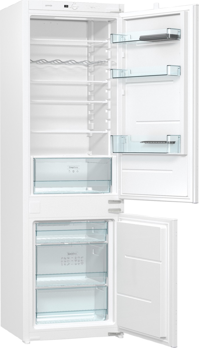 CrispZone — один из самых больших на рынке ящиков для хранения овощей и фруктов. Низкая температура и возможность регулировки уровня влажности продляют свежесть ваших продуктов. Снижение энергозатрат На случай вашего длительного отсутствия можно настроить холодильник на энергосберегающий режим, так как дверца будет все время закрыта. Правильное место для бутылок и баночек В холодильниках Gorenje бутылки не занимают места на стеклянных полках, которое можно использовать для хранения других продуктов. Специально разработанная полочка для бутылок обеспечивает оптимальное использование внутреннего пространства. Достаточно места даже для индейки Самый просторный ящик находится в морозильном отделении; в нем найдется место для очень больших упаковок, например, индейки, больших кусков мяса, пиццы и целых тортов. Интенсивное охлаждение большого количества продуктов При включении «Интенсивного охлаждения» температура в холодильном отделении понижается до 3°С, что почти в два раза ниже обычного значения. В сочетании с большим объемом такая температура идеально подходит для быстрого охлаждения продуктов после еженедельной закупки в магазине. Через 6 часов функция выключается автоматически, и температура возвращается к прежнему значению. Безопасное хранение бутылок Дверь холодильника обеспечивает достаточно места для хранения очень больших стеклянных и пластиковых бутылок. Специальный ограничитель удерживает бутылки на месте, чтобы предотвратить их опрокидывание и проливание жидкостей при открывании и закрывании двери. NoFrost DualAdvance Интенсивная циркуляция холодного воздуха выводит влагу из морозильного отделения, предотвращая образование инея и льда на продуктах и внутренних стенках прибора, при этом в холодильном отделении обеспечивается оптимальный уровень влажности, позволяющий избежать высушивания продуктов и сохранить их свежесть дольше. Это дает возможность оптимально контролировать процессы охлаждения и замораживания в каждом отделении прибора. • Без необходимости размораживания и очистки • Упаковки продуктов не примерзают друг к другу • Качественная заморозка продуктов • Улучшенный обзор содержимого морозильника • Больше места • Запахи холодильного и морозильного отделений не смешиваются • Продукты не высушиваются и остаются свежими дольше Множество вариантов хранения Полки из закаленного стекла можно легко переставлять на необходимую высоту, вынимать и обратно вставлять в холодильник и таким образом организовывать внутреннее пространство в соответствии с своими потребностями. Полки прочные и выдерживают очень большие нагрузки. Грамотно расположенное и эффективное Высокоэффективная светодиодная подсветка обеспечивает оптимальную освещенность внутреннего пространства. Светодиоды расходуют в 10 раз меньше электроэнергии и служат в 30 раз дольше обычных лампочек.