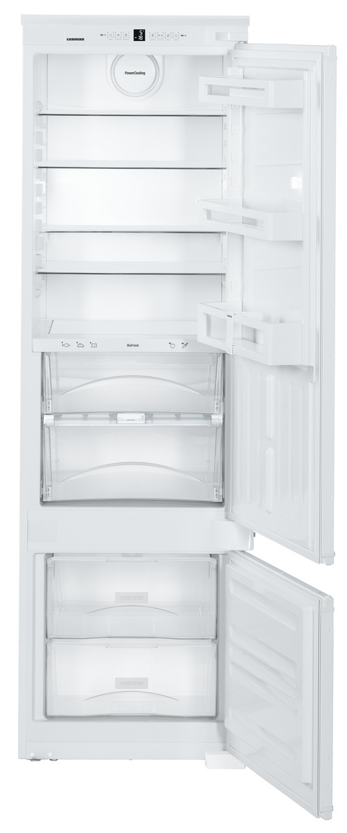 Секция BioFresh При температуре около 0 °C и идеальной влажности фрукты, овощи, мясо, рыба и молочные продукты сохраняют полезные витамины, изысканный аромат и аппетитный внешний вид намного дольше, чем в обычном холодильном отделении. Система DuoCooling Благодаря наличию двух независимых холодильных контуров система DuoCooling позволяет точно отрегулировать температуру в холодильной и морозильной камерах комбинированного холодильника-морозильника. Также благодаря этому отсутствует воздухообмен между холодильной и морозильной камерами. Это препятствует передаче запаха и «обветриванию» хранящихся продуктов питания. Выдвижные ящики на телескопических шинах Ящики выдвигаются по телескопическим шинам с легким ходом, и легко извлекаются, если дверь открыта под углом 90°. Контейнер для яиц Раздвижная конструкция контейнера для яиц позволяет хранить в нем до 20 куриных или 28 перепелиных яиц. Чтобы яйца хранились дольше, рекомендуем ставить их в контейнер острым концом вниз или поместить контейнер в секцию BioFresh. Контейнер для льда Большой контейнер для льда оснащен крышкой с удобным отверстием для заливки воды. Крышка плотно закрывается, и контейнер можно перемещать и хранить, не боясь расплескать воду. Регулятор влажности DrySafe/HydroSafe Регулятор влажности позволяет устанавливать оптимальный уровень влажности для каждого контейнера BioFresh. В секции BioFresh создается режим пониженной влажности DrySafe, который идеально подходит для хранения мяса, рыбы и молочных продуктов. Режим повышенной влажности HydroSafe в контейнере BioFresh наиболее оптимален для хранения фруктов и овощей без упаковки, относительная влажность воздуха при этом может достигать 90 %.