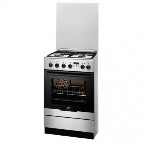Духовка покрыта специальным составом - кислостойкой эмалью, которая легко чистится. Внизу находится удобный ящик для аксессуаров. В духовке предусмотрено отверстие для выхода пара и подсветка. Специальная конструкция решётки позволяет посуде занимать устойчивую позицию на плите, независимо от диаметра дна. Газовая плита ELECTROLUX EKK 954507 X (EKK954507X) - это оптимальный выбор по стоимости и качеству. Плита легко впишется в интерьер любой кухни потому, что сама по себе не привлекает внимание. Её главный козырь - качественная работа долгие годы.