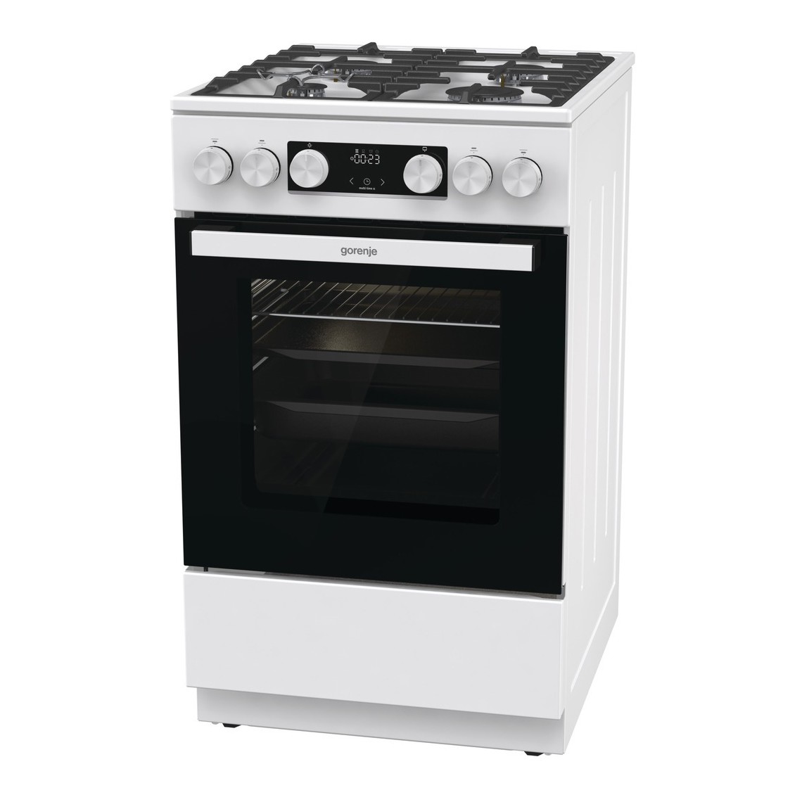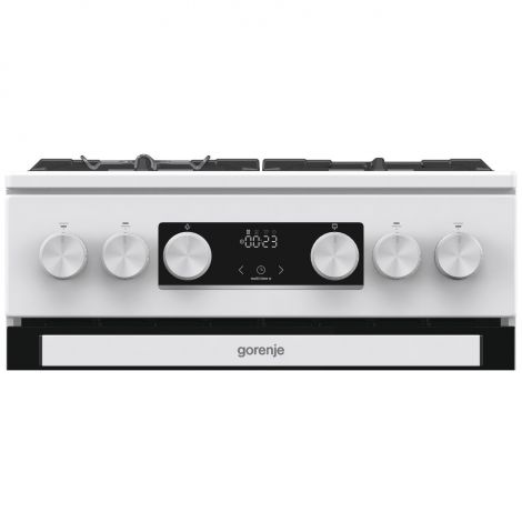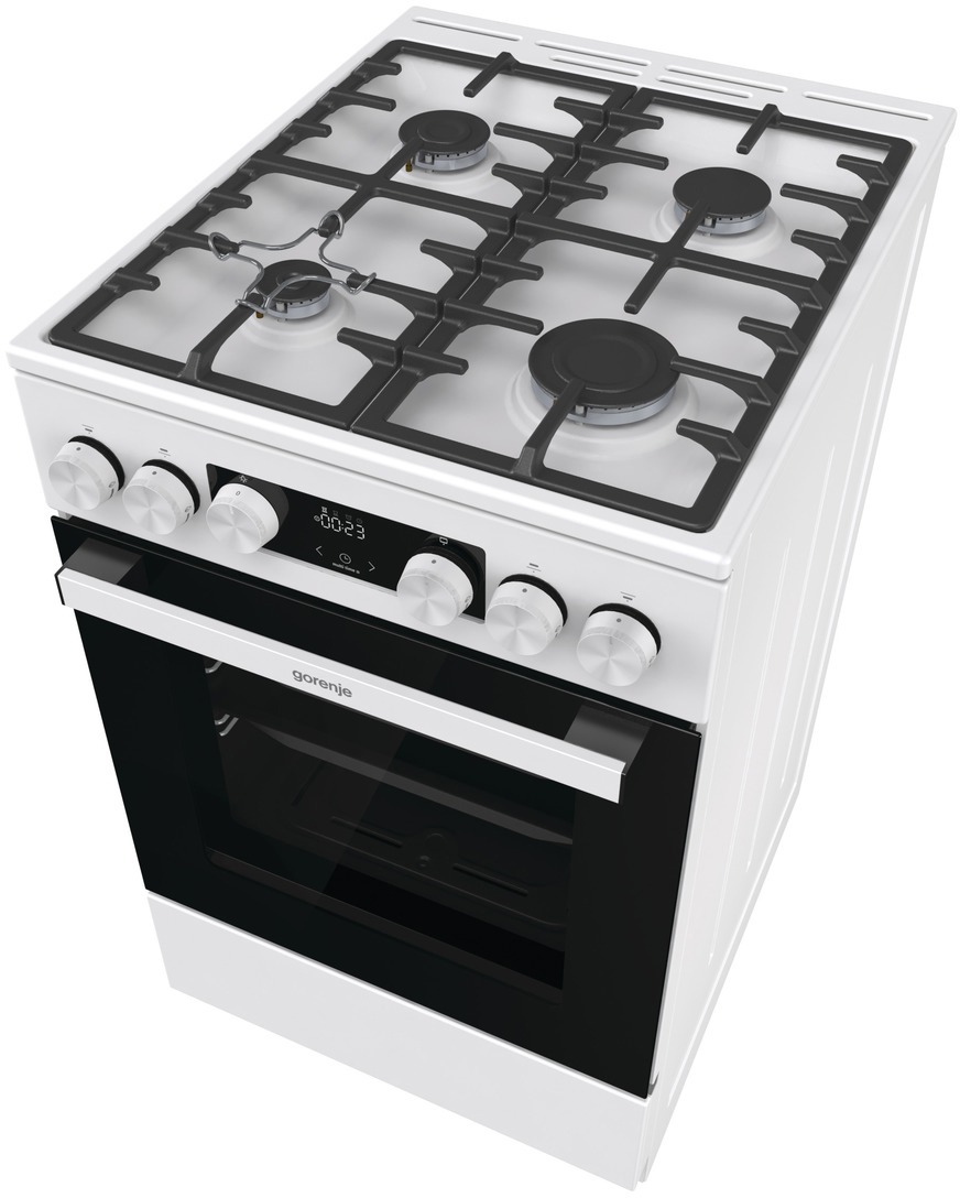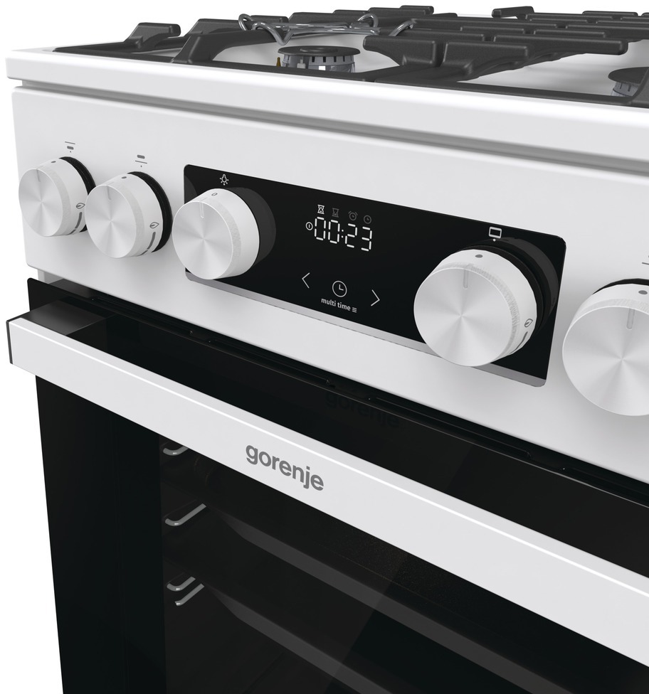 Газова плита GGI5C21WF-B від Gorenje – надійне рішення для вашої кухні. Виготовлена в білому кольорі, має компактні розміри (50х59.4 см) та газові зони нагріву з максимальною площею 1260 см2. Газова духовка об’ємом 67 л з функцією термостата і інфрачервоним нагрівачем забезпечує рівномірне прогрівання. Особливості конфорок та духовки Плита оснащена 4 газовими конфорками з потужністю від 1 до 3 кВт, що дозволяє використовувати різний посуд. Газовий гриль створює хрустку скоринку, а електрозапалювання в ручці – швидкий старт конфорок. Вбудована система SoftClose забезпечує плавне закривання дверцят духовки, подвійні скляні дверцята гарантують теплоізоляцію, а система захисту від перегріву – безпеку. Додаткові функції Модель комплектується форсунками для балонного газу G30/30 і підключенням до мережі 220/230 В. Вбудований дисплей з підсвіткою та індикатором нагрівання допомагає контролювати процес приготування. Всі необхідні комплектуючі (ніжки, деко, решітки) також додаються. Енергетична ефективність З енергетичним класом А і споживанням 1.61 кВт (класичний режим), плита є економічним вибором. Висувний ящик для посуду забезпечує зручне зберігання кухонного приладдя.