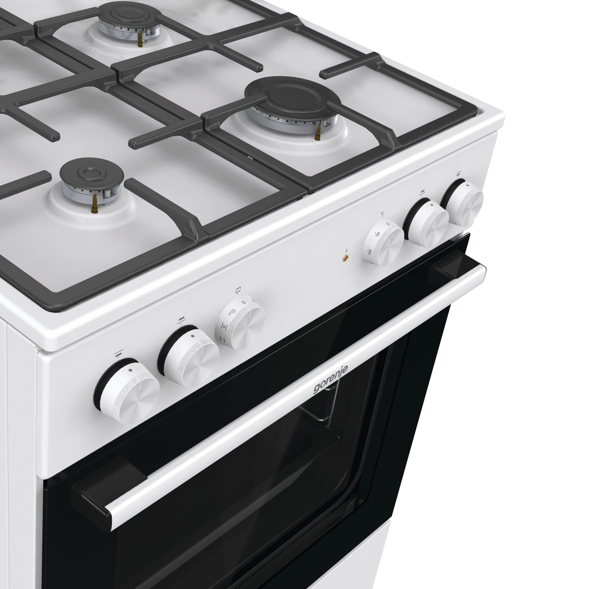Gorenje GK6A40WFFM — це ідеальне рішення для тих, хто цінує функціональність, стиль і сучасні технології. Комбінована плита поєднує в собі газову варильну поверхню та електричну духовку з розумними функціями для легкого й ефективного приготування.