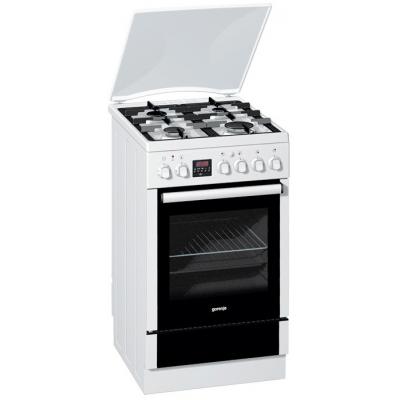 Плита Gorenje K 55320 AW– это комбинированная плита, которую можно отнести к категории умной техники. Из стандартных функций в этой модели присутствует электроподжиг конфорок посредством нажатия кнопки, а также газ-контроль. Из особенностей можно выделить электронное программирование, наличие режимов «Пицца» и «SmartCook system» в духовке, 2 уровня одновременного приготовления в духовке, наличие электронного дисплея. Управление плитой происходит с помощью обычных поворотных переключателей. В то же время с помощью электронного программатора можно настроить время готовки, время окончания приготовления, часы и даже будильник. Об окончании приготовления «умная» плита оповестит вас звуковым сигналом.