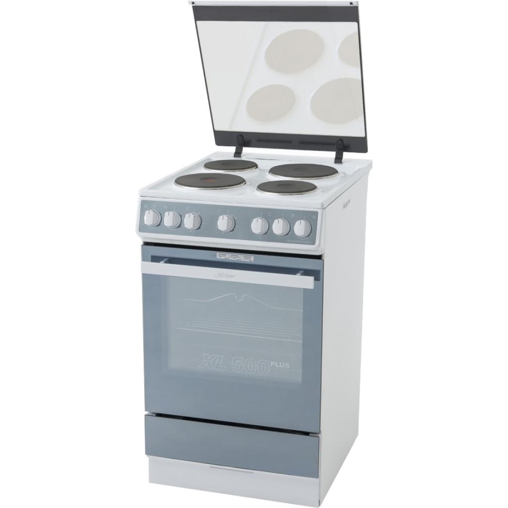 Варочная поверхность оснащена четырьмя электрическими конфорками, одна из которых - конфорка усиленного нагрева. Для хранения посуды и экономии свободного пространства на кухне предусмотрен специальный ящик, расположенный в нижней части корпуса. Увеличенный объем духовки позволит готовить большие блюда из птицы или обеды на несколько персон одновременно. Духовой шкаф обладает встроенным механическим таймером, который избавит от необходимости контроля процесса приготовления.