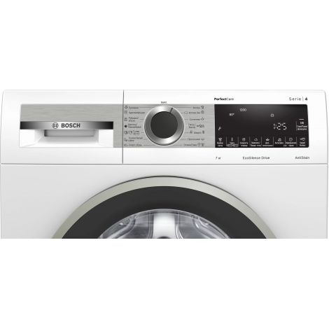 Узкая стиральная машина PerfectCare с инновационным барабаном SoftCare Drum и технологии AntiStain: автоматическое удаление жирных пятен даже из деликатных тканей. Во время стирки темных вещей стиральная машина добавляет больше воды и запускает дополнительный цикл полоскания для более тщательного вымывания остатков моющего средства для устранения пятен. Уменьшение смятий белья до 50% Мы знаем, что вы прилагаете массу усилий, чтобы обеспечить полноценный уход за любимой одеждой. Но стирки может быть беспощадным для вашего белья. На одежде могут появляться множество складок и смятий во время стирки, требующих интенсивного глажки с приложением множества усилий и времени. А это, в свою очередь, приводит к повреждению ткани за слишком высокой температуры. Вот почему мы изобрели технологию Антизминання - это специальная программа стирки, которая заботится о вашем одежду, поэтому оптимизирована таким образом, чтобы образовывать меньше складок, уменьшив смятия белья до 50%, в результате чего вам нужно будет прилагать меньше усилий при глажке. Заботливая с Вашей одеждой. Заботливая к Вашей кожи. На недостаточном полосканий на одежде могут оставаться аллергены, часто вызывают раздражение на коже. Вот почему мы разработали функцию AllergyPlus. При ее активации дольше сохраняется повышенная температура во время стирки, а также добавляется еще один цикл полоскания, чтобы эффективно снизить количество аллергенов. Это означает меньше пыльцы, шерсти животных и пылевых клещей на Вашей одежде, а также стирки. Программа была награждена знаком отличия качества ECARF, поскольку она идеально подходит для аллергиков и одновременно заботится о ткань. Практически бесшумная стиральная машина. Стиральные машины Bosch, с использованием технологии AntiVibration на боковых стенках, не только имеют привлекательный дизайн, но и обеспечивают большую стабильность и уменьшают вибрацию во время их работы. Кроме того, усовершенствованная изоляция также снижает уровень шума, благодаря чему стиральные машины Bosch впечатляют тихой работой во время отжима. Результаты стирки, которые можно увидеть, а не услышать!