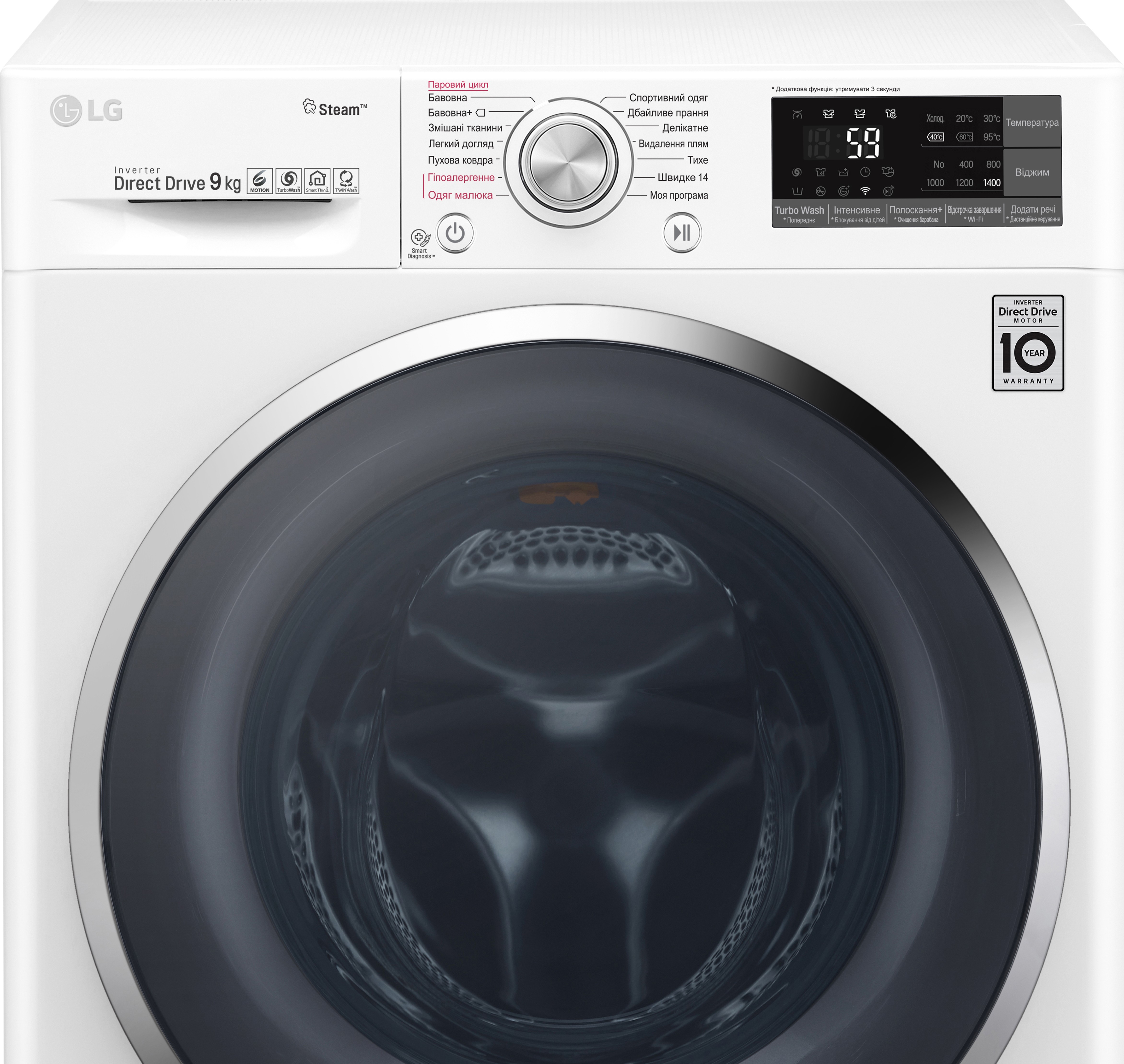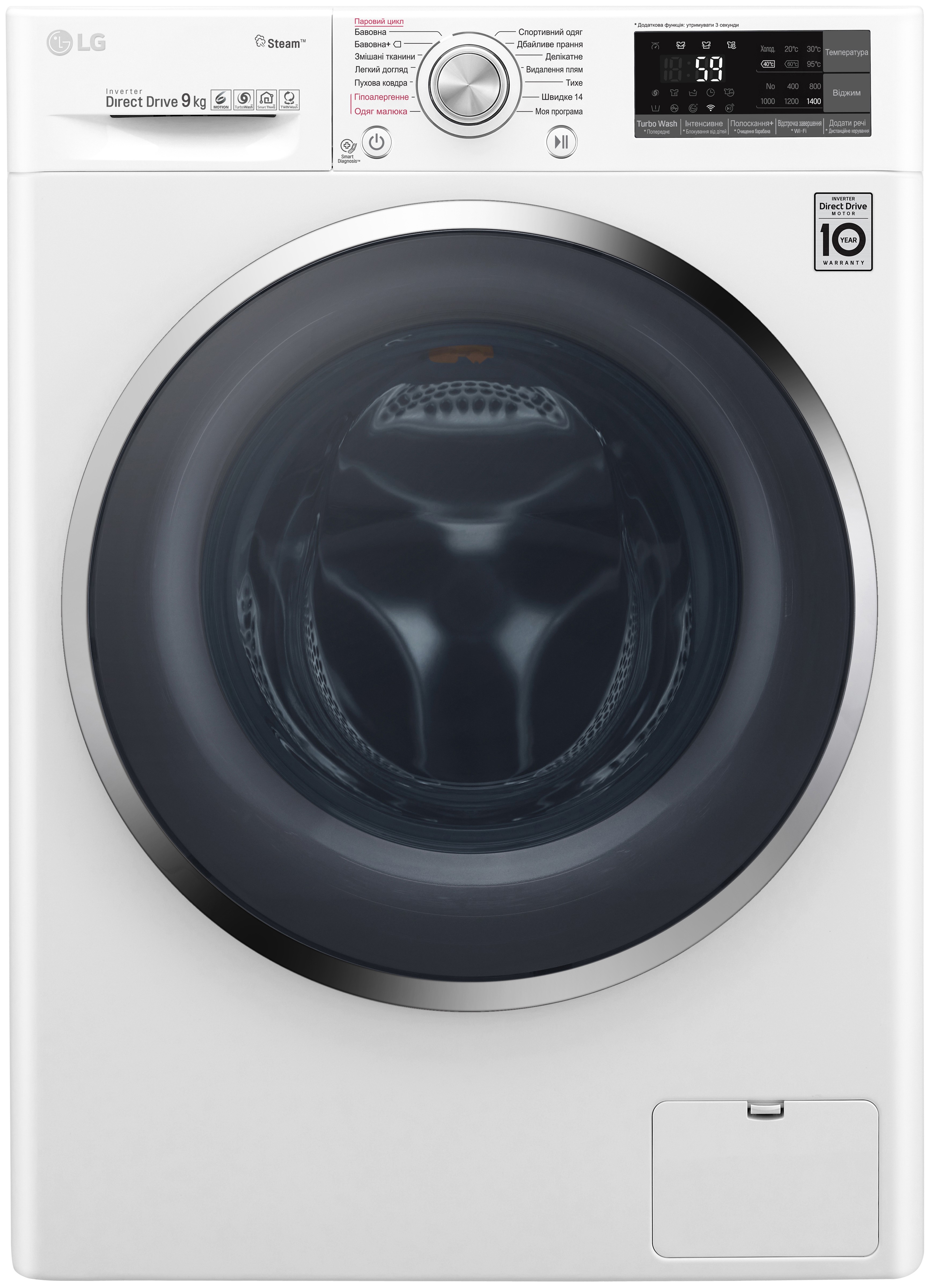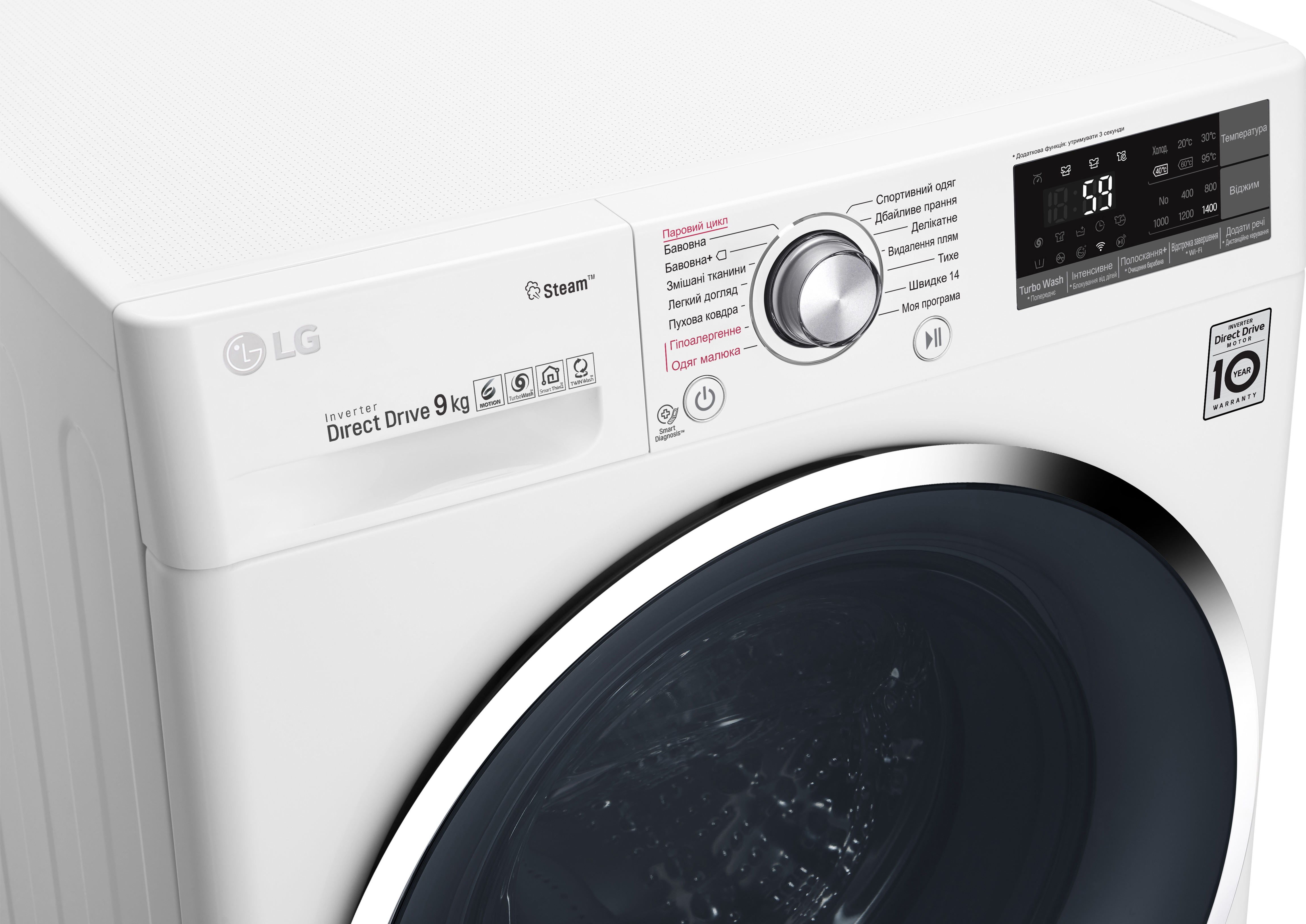Ожидайте меньше, успевайте больше Технология TurboWash очищает одежду быстрее. Функция JetSpray равномерно разбрызгивает чистую воду на одежду. Благодаря этому цикл Полоскание стал еще более эффективным. 6 motion - 6 движений заботы В отличие от обычных стиральных машин, барабан LG имеет широкий набор вариантов вращения, максимально адаптированных к различным типам ткани и степени загрязнения белья. Inverter Direct Drive Система LG Inverter Direct Drive повышает эффективность двигателя путем отказа от ремня и шкива, а также инверторной технологии, помогает снизить потребление электроэнергии и обеспечивает большую надежность машины. Эта упрощенная система также помогает уменьшить уровень шума. WiFi Благодаря технологии подключения к WiFi, Вы сможете стирать вещи в любое время, находясь в любом месте. Загружайте дополнительные циклы стирки, а также легко диагностируйте неисправности с помощью функции SmartDiagnosis.