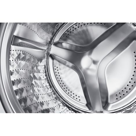 Эффективная стирка даже в холодной воде При использовании технологии Eco Bubble™ при растворении моющего средства в воде образуются тысячи пузырьков. Полностью растворенное моющее средство быстро проникает в волокна ткани и очищает загрязнения в холодной воде так же эффективно, как и в теплой. Затем во время полоскания идеально растворенное моющее средство без остатка вымывается из ткани. Сотовый барабан для бережной стирки В обычной стиральной машине ткань может повреждаться, попадая в отверстия барабана. В этой же машине Samsung используется сотовый барабан Diamond с уникальным рельефом — отверстия в нем меньшего размера и находятся в алмазоподобных углублениях («сотах»). Скапливаясь в этих углублениях, вода создает защитный слой между бельем и стенками барабана, предохраняя от повреждений даже самую деликатную ткань.
