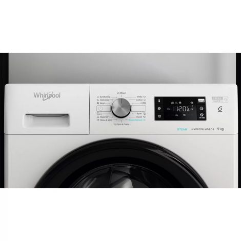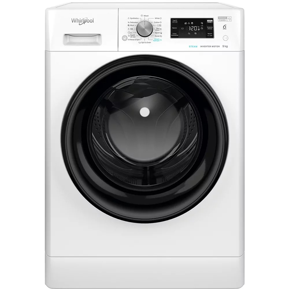 Пральна машина Whirlpool фронтальна, 9кг, 1400, A+++, 60см, дисплей, пара, інвертор, люк чорний, білий. Двигун SenseInverter. Інноваційний інверторний двигун SENSE Inverter забезпечить тривалу безшумну роботу. Насолоджуйтесь ідеальними результатами та тишею. FreshCare+. Ця технологія стане незамінним рішенням у тих випадках, коли Ви не встигли або забули дістати білизну відразу після прання, оскільки навіть при цьому Ваша білизна все одно залишиться свіжою та м’якою. Цикл FreshCare+ передбачає періодичне двонаправлене обератння барабану у поєднанні з помірним відпарюванням.Така дія покращує циркуляцію повітря у барабані, перешкоджаючи утворенню неприємних запахів та зменшує зминання білизни завдяки підтриманню оптимального рівня вологи. Ви можете активувати опцію FreshCare+ під час встановлення основних параметрів прання або безпосередньо під час прання.Відмінити опцію Ви можете у будь-який час. Блокування від дітей. Насамперед безпека. Ця пральна машина Whirlpool оснащена системою блокування від дітей для запобігання випадкового використання цього приладу дітьми. Програма Щоденне прання Щоденне прання без зайвих зусиль. Програма Щоденне прання розроблена для повсякденного прання (3,5 кг) змішаних бавовняних і синтетичних тканин за температури 40° С протягом 60 хвилин. Індикація ходу програми. Інтуїтивне управління. Індикація ходу програми відображає всі етапи обраного циклу. Швидке прання за 30 хвилин. Швидкі результати. Програма Швидке прання за 30 хвилин забезпечить ідеальні результати всього за 30 хвилин. Таймер зворотного відліку Ідеальне управління часом. Таймер зворотного відліку вказує час до закінчення програми. Завантаження 9 кг. Вам не бракуватиме місця. Завдяки барабану з завантаженням 9 кг, ця пральна машина Whirlpool забезпечить Вас необхідним простором. 1400 об/хв. Надзвичайна швидкість. Швидкість віджиму цієї моделі пральної машини Whirlpool складає 1400 оборотів на хвилину. Надзвичайна енергоефективність: A+++-30%. Неперевершена енергоефективність. Ця пральна машина Whirlpool, маючи надвисокий клас енергоефективності A +++, знижує споживання енергії на 30%.