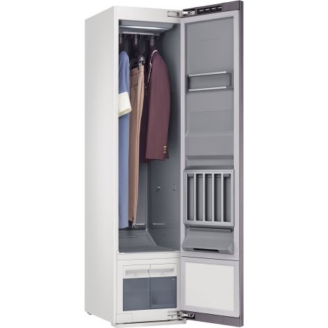 Устранение бактерий, вирусов и аллергенов. Технология JetSteam Технология Jet Steam обеспечивает гигиеническую очистку и освежение вашей одежды, благодаря системе мощных потоков высокотемператуного пара Jet Air, который проникает глубоко внутрь тканей и устраняет 99.9% вирусов и бактерий, 100% пылевых клещей, 99% запахов и 99% прочих вредных веществ*. * Устраняет: 1) 99,9% 4 видов вирусов (аденовирус, грипп, коронавирус и вирус герпеса) по результатам тестирования в лаборатории Корейского университета с использованием режима Гигиена. 2) 99,9% 2 типов бактерий (кишечная палочка и стафилококк), 99% запахов, переносящихся по воздуху (Изо-валериновая кислота: пот; 4-этинилпиридин: табак; Валеральдегид: продукты питания, например, мясо на гриле; и Тетрахлорэтилен: химчистка) на основе тестирования, проведенного Intertek с использованием режима Освежение. 4) 99% вредных веществ (перхлорэтилен) по результатам тестирования Intertek с использованием режима Освежение. Индивидуальные результаты могут отличаться в зависимости от фактической ситуации использования. * Убивает : 1) 100% пылевых клещей, по результатам тестирования, проведенного Intertek / BAF сертификацией с использованием режима Гигиена. Устранение запахов и восстановление свежести одежды Дезодорирующий фильтр Паровой шкаф AirDresser оснащен дезодорирующим фильтром для устранения запахов. Фильтр улавливает и удаляет 99% неприятных запахов, включая запахи от пота, табака, жареного мяса и химчистки*, и предотвращает их накопление на одежде. *На основании тестирования Intertek с использованием обычного режима: изо-валериановая кислота: пот, 4-этенилпиридин: табак, валеральдегид: жареное мясо, и тетрахлорэтилен: химическая чистка. Проверено на изо-валериановую кислоту и 4-этенилпиридин на основе стандарта KS K0891. Индивидуальные результаты могут различаться в зависимости от фактической ситуации использования. Деликатная сушка при низкой температуре Технология сушки HeatPump Технология HeatPump бережно и аккуратно высушит вашу одежду. Она предотвращает усадку и повреждения одежды, используя низкую температуру сушки благодаря слаженной работе двух технологий – потоков воздуха JetAir сверху и теплового насоса HeatPump снизу. Вместе они улучшают циркуляцию воздуха внутри шкафа и равномерно высушивают вашу одежду. Меньше складок. Меньше глажки. Технология Wrinkle Care Опрятный внешний вид без глажения! Технология Wrinkle Care использует сочетание пара и воздуха, уменьшая и разглаживая складки на вашей одежде так, что можно одевать ее, не затрачивая время на глажение. Технология устраняет до 100% складок на шерстяной одежде и до 80% складок на одежде из вискозы*. *На основании независимого тестирования Intertek с использованием нормального режима в соответствии со стандартами KS K 0891 и ISO 9867. После использования AirDresser эффективность разглаживания складок на одежде из шерстяных тканей составила 100%, а на вискозных – 80%. Быстрое и бесшумное удаление пыли с одежды Система Jet Air + Технология Air Hanger Благодаря системе мощных воздушных потоков Jet Air и специальным воздушным вешалкам Air Hangers одежда полностью продувается изнутри наружу и в двух направлениях – вверх и вниз. Такая система эффетивно устраняет глубоко въевшуюся пыль из тканей практически бесшумно и без вибрации*! *На основании внутреннего тестирования уровень шума составляет 42,8 дБ в обычном режиме и 37,8 дБ в бес