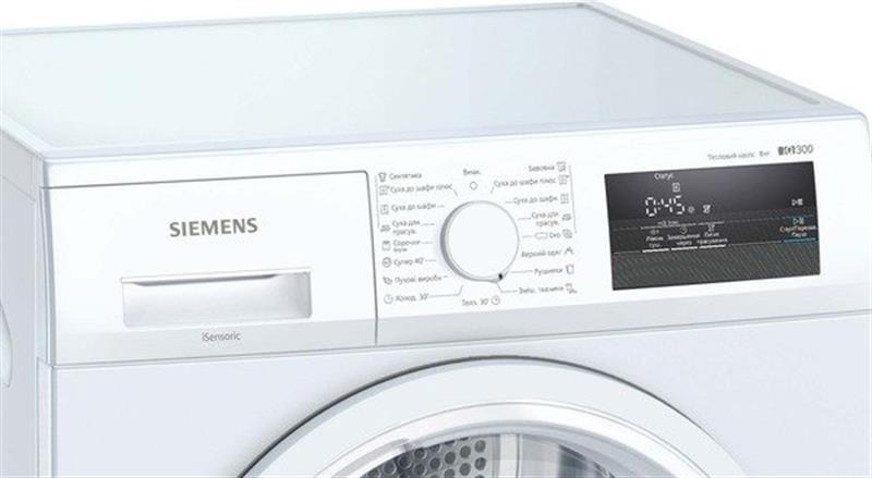 Дбайливе сушіння білизни: технологія autoDry З метою запобігання пересушуванню білизни протягом циклу сушіння, спеціальні сенсори вимірюють та контролюють рівень температури та вологи. Таким чином Ваша білизна буде висушена дбайливо та відповідно до Ваших очікувань із заданим рівнем залишкової вологи. Нам вдалося знизити рівень споживання електроенергії та зменшити час, необхідний для прасування. Перша 40-хвилинна програма сушіння від Siemens: «Супер 40» Білизна, випрана з використанням програми «Супер15», сушиться усього за 40 хвилин завдяки особливому рівню температури та оптимізації перебігу фази охолодження. Швидкий та дбайливий цикл сушіння для невеликих завантажень – Швидка 40 Програма "Швидка 40" обережно сушить невеликі завантаження білизни (1 кг) білизни всього за 40 хвилин, тоді як рівень вологи постійно вимірюється під час процесу сушіння. Це ідеально підходить для синтетичних волокон, легкої бавовни або змішаних тканин (нечутливий текстиль). При використанні у поєднанні з програмою прання супер 15 ’, ви отримаєте чистий одяг менш ніж за годину. Сенсорна технологія autoDry захищає білизну від надмірного перегріву та забезпечуює дбайливе та рівномірне сушіння. Швидкий та дбайливий цикл сушіння для невеликих завантажень – Швидка 40.