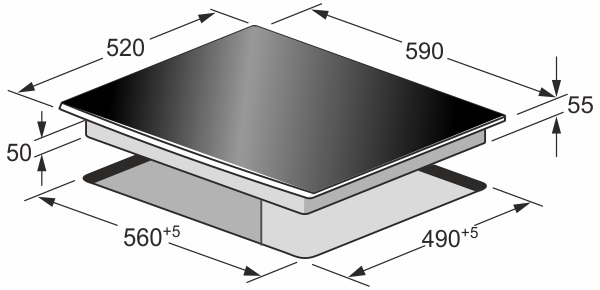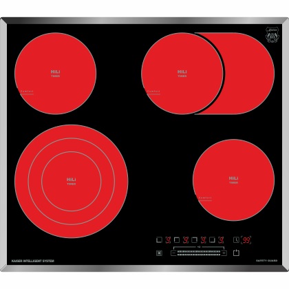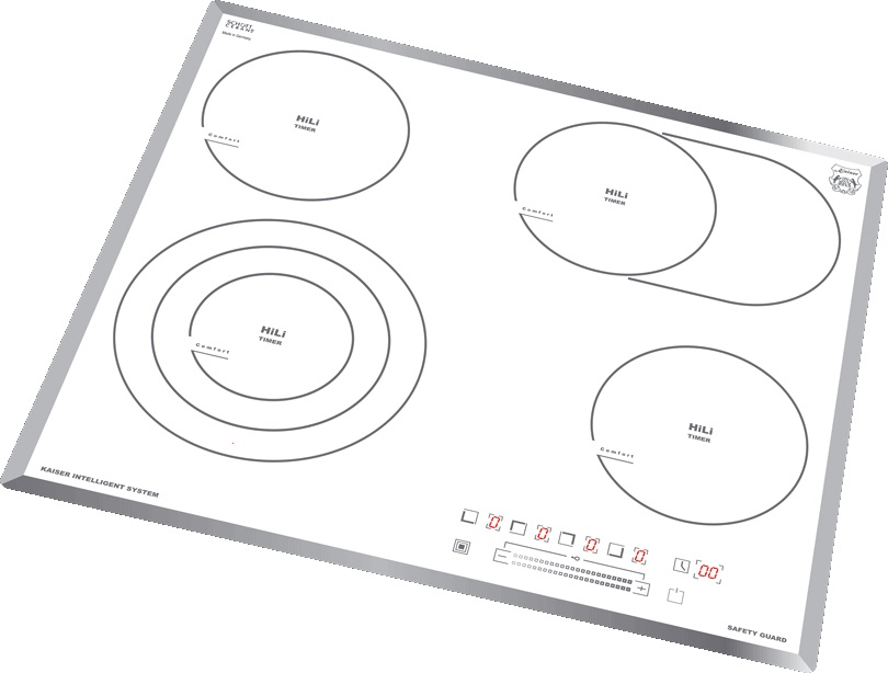 ОПИСАНИЕ КОНФОРОК 2 ? O 16,5 см – 1,2 кВт/ 1 ? O 12,0 / 17,5 / 23,0 см (0,8 / 1,6 / 2,3 кВт) – Тройная зона нагрева /1 ? O 16,5 / 16,0 ? 27,0 см (1,1 / 2,0 кВт) – Расширяемая зона нагрева