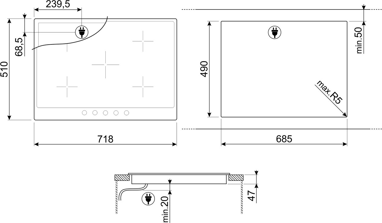 ФУНКЦИОНАЛЬНОСТЬ: 5 зон нагрева Hi-Light: Задняя левая: 1,2 кВт, o 140 мм Передняя левая: 2,0 кВт, o120- 180 мм Центральная: 2,0 кВт, o148х253 мм Задняя правая: 2,4 кВт, o 144-214 мм Передняя правая: 1,2 кВт, o 148 мм 9 регулируемых уровней мощности Индикация уровня мощности Индикация остаточного тепла БЕЗОПАСНОСТЬ: Защита от перегрева