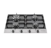 ФУНКЦИЯ АВТОПОДЖИГА Автоподжиг позволяет поджечь газ безопасно и защищает пользователей от вероятности получения ожога. При применении автоподжига искра подаётся от нажатия на поворотные ручки на панели управления. ЧУГУННЫЕ РЕШЕТКИ Массивные и элегантные чугунные решетки чрезвычайно надежные и устойчивые даже к высоким температурам. Они создают ощущение надежности, долговечности и удобства на вашей кухне. ФРОНТАЛЬНАЯ ПАНЕЛЬ УПРАВЛЕНИЯ Практичные регуляторы расположены на фронтальной части поверхности; они позволяют точно установить параметры приготовления пищи и очень легко чистятся. ГАЗ-КОНТРОЛЬ Наличие функции газ-контроля гарантирует полную безопасность газового оборудования. Благодаря данной функции газ автоматически перекроется в случае случайного затухания пламени.