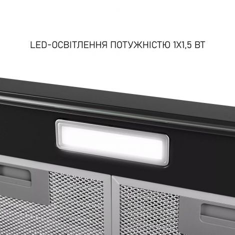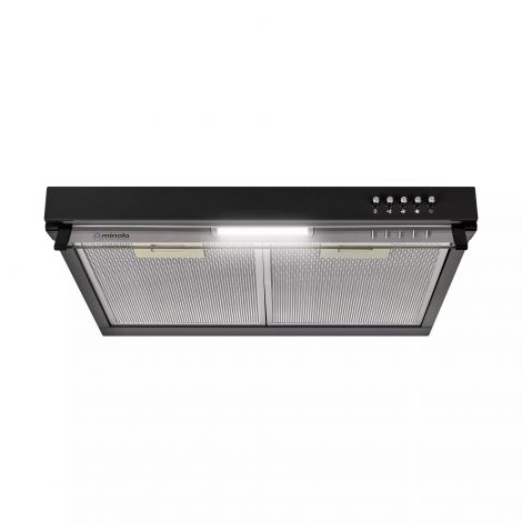 Minola HPL 622 BL — стильна плоска витяжка в чорному кольорі з елегантним скляним козирком. З продуктивністю 450м3/год вона швидко очищує повітря навіть на великих кухнях. LED-підсвітка над плитою економна і комфортна для приготування в темну пору доби. Надійне кнопкове управління дозволяє легко перемикатися між режимами без зайвого клопоту.