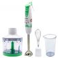 Функции: измельчение, смешивание, взбитие Ножи из нержавеющей стали Пластиковый корпус Прорезиненные кнопки Съемная насадка из нержавеющей стали Чаша с измельчителем 400 мл Ручка с петлей для подвешивания Аксессуары: венчик, мерный стакан 600 мл, насадка для взбивания, насадка для замеса