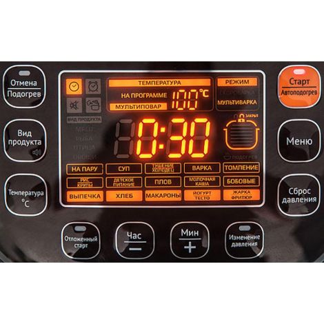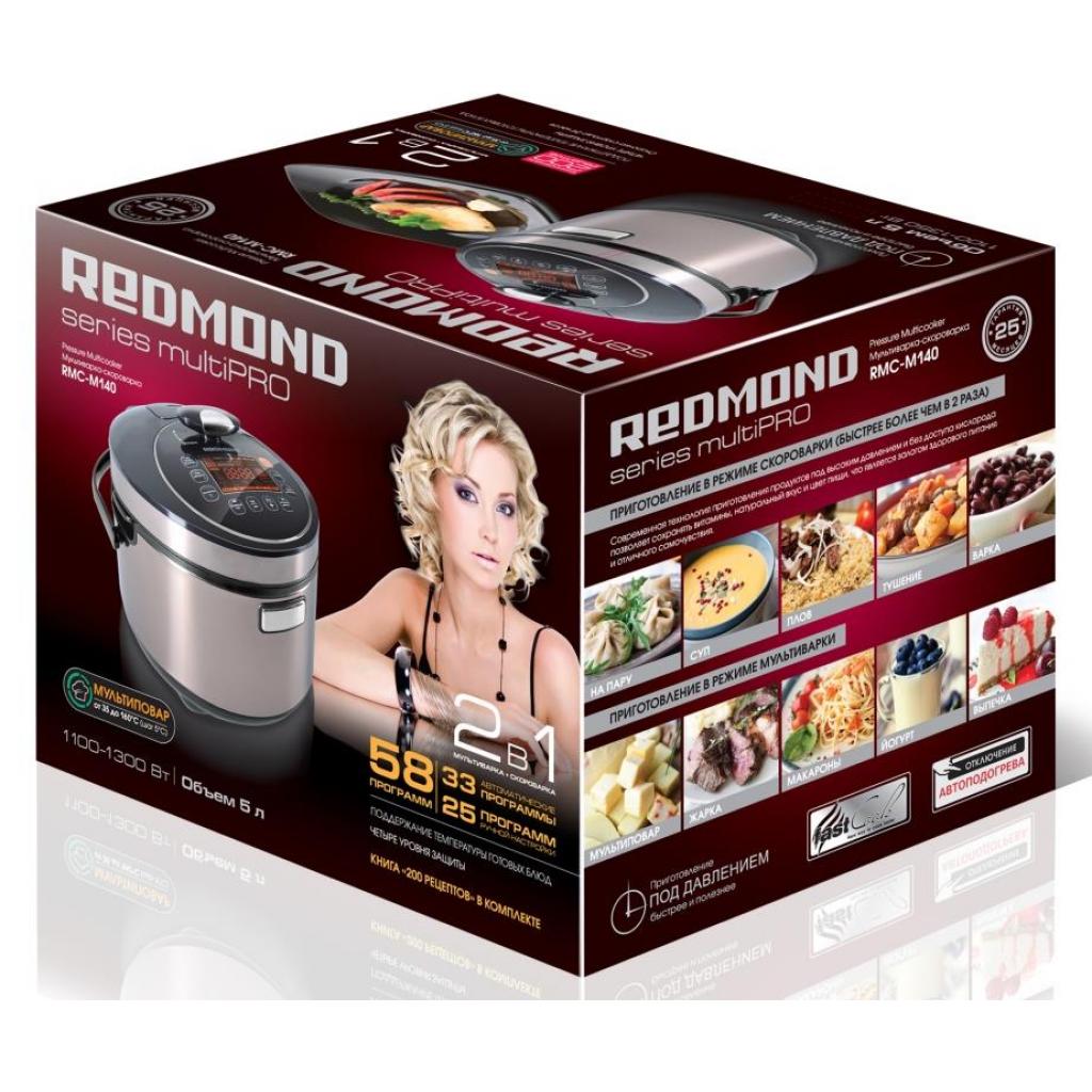 Redmond RMC-M140 – компактная и функциональная мультиварка с большим выбором режимов работы. Устройство весьма удобно в эксплуатации – имеется LCD дисплей с большими цифрами таймера и индикацией температуры, режима и т.д. Управление мультиваркой осуществляется электроникой, есть 33 автоматических программы, 24 программы ручной настройки, регулировка температуры и времени приготовления, функция отложенного старта, поддержания тепла. В комплекте идёт книга на 200 рецептов. Хорошая мощность и объем мультиварки позволят приготовить вкусный обед на большую семью.