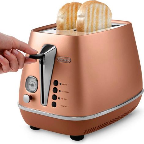 Тостер DeLonghi CTI 2103 покорит вас своим утонченным и оригинальным дизайном, сделает вашу кухню по-настоящему особенной и уникальной. Модель принадлежит дизайнерской коллекции техники для завтрака Distinta. Итальянский производитель позаботился о том, чтобы ваш день всегда начинался только с хорошего настроения, ведь каждый прибор Distinta – это стильное дополнение к интерьеру дома. Корпус тостера бронзового цвета дополняют сверкающие хромированные детали. Теперь вы сможете получать истинное удовольствие от нежных хрустящих тостов каждое утро.
