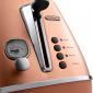 Если вы решите купить DeLonghi Distinta CTI 2103 – вы получите функциональный прибор, простой и удобный в эксплуатации. С ним вы можете без труда готовить даже маленькие кусочки хлеба – тостер имеет функцию «Экстра-подъем». Кроме того, модель снабжена специальной решеткой для подогрева булочек или круассанов. Кнопки имеют неоновую подсветку. Есть возможность выбирать степень зажаривания хлеба. Также прибор оснащен нескользящими ножками для надежной фиксации на поверхности стола.