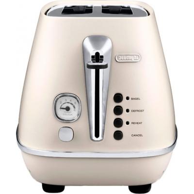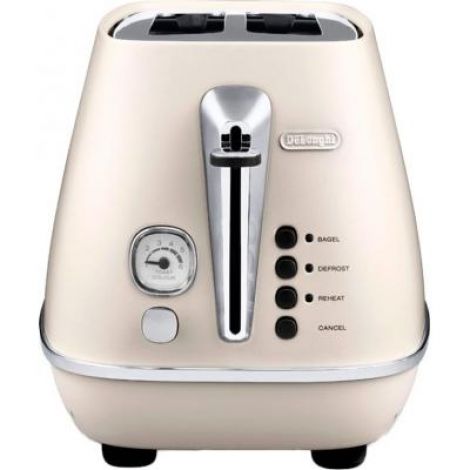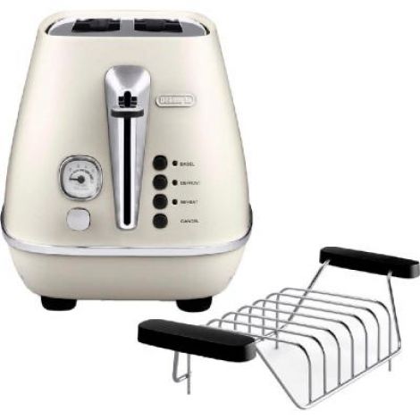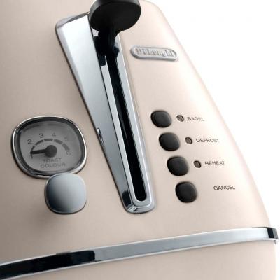 Если вы решите купить DeLonghi Distinta CTI 2103 – вы получите функциональный прибор, простой и удобный в эксплуатации. С ним вы можете без труда готовить даже маленькие кусочки хлеба – тостер имеет функцию «Экстра-подъем». Кроме того, модель снабжена специальной решеткой для подогрева булочек или круассанов. Кнопки имеют неоновую подсветку. Есть возможность выбирать степень зажаривания хлеба. Также прибор оснащен нескользящими ножками для надежной фиксации на поверхности стола.