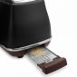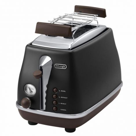 Тостер DeLonghi CTOV 2103 отличается от предыдущих моделей наличием специальной решетки. Вы сможете подогреть остывшие булочки, круассаны или другую выпечку. Для этого расположите сдобу на решетку и включите режим подогрева. Мощность тостера составляет 900 Вт.