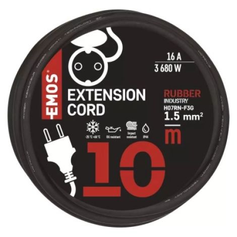 Кількість розеток - 1, євророзетка із заземленням (Тип F), Довжина кабелю - 10 м, заземлюючий контакт, Захист - IP44, Сумарна потужність підключеного навантаження - ≤ 3680 Вт, Колір - чорний