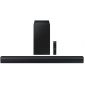 Глибокі насичені баси з бездротовим сабвуфером. Сабвуфер, що входить до комплекту, підключається по бездротовій мережі і забезпечує рівний, потужний звук з будь-якої точки кімнати. Більше басів, більше відчуттів. Для тих, хто бажає додаткових басів, режим Bass Boost посилює глибокі низькі частоти, щоб додати ще більше ударів під час перегляду. Звук точно налаштований для улюбленого контенту. Адаптивний звук Lite аналізує звукові доріжки, щоб оптимізувати звук для конкретного контенту. Особливості Ігровий режим Слухайте краще, грайте краще. Ігровий режим дає перевагу в іграх, автоматично видаляючи відволікаючі шуми та оптимізуючи звуки для точного визначення їхнього розташування. Зручне використання Нічний режим. Слухайте діалоги, не заважаючи іншим. Нічний режим ідеально підходить для нічного перегляду. Зменшіть загальну кількість децибелів у нічний час, особливо стискаючи баси, коли інші сплять. Поліпшення голосу Voice Enhance Ловіть кожне слово та слухайте чіткі діалоги. Налаштуйте Voice Enhance для оптимізації голосового звуку в контенті, щоб діалоги були чіткими та легкими для слуху навіть при низькій гучності. Синергія з QLED Підключення до телевізора через Bluetooth. Підключіть саундбар до телевізора через бездротовий зв’язок. Чи заважає кабель від саундбару до ТБ в інтер’єрі? Просто скористайтеся Bluetooth для підключення саундбару до телевізора Samsung без дротів. Будь ласка, перевірте, чи телевізор сумісний із Bluetooth. Єдиний пульт One Remote Один пульт для повного контролю. Використовуйте пульт до телевізора Samsung для керування як телевізором, так і ключовими функціями звукової панелі, такими як живлення, гучність і навіть звукові ефекти. Функції та дизайн пульта дистанційного керування можуть відрізнятися залежно від моделі телевізора та регіону. Переконайтеся, що пульт дистанційного керування телевізора сумісний із Bluetooth. Реальний продукт може відрізнятись від представленого на зображенні.