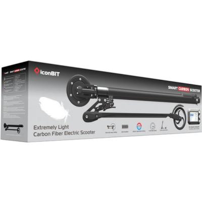 Электросамокат iconBIT SMART SCOOTER карбон (Carbon) – современное средство передвижения для продвинутого горожанина. Электросамокат изготовлен из суперлегкого и невероятно прочного карбона. Он весит всего лишь 6,8 кг, а складывать его можно одним легким движением руки. В сложенном состоянии самокат имеет длину 90 см.