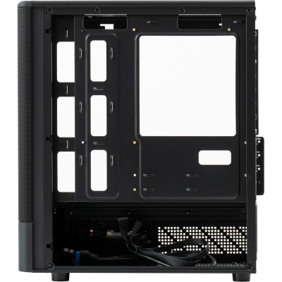 Корпус реалізовано без вбудованого блоку живлення, але з ретельно продуманим нижнім розташуванням під нього. Це забезпечує ефективний потік повітря та стабільність роботи ваших компонентів. Проєктування корпусу включає місця для додаткових вентиляторів, які можна встановити на верхню (2x12 см), нижню (2x12 см) та задню (1x12 см) панелі, що дозволяє ще більше покращити охолодження системи.