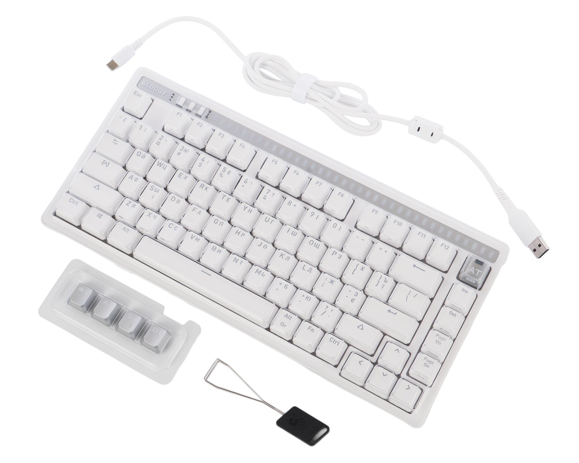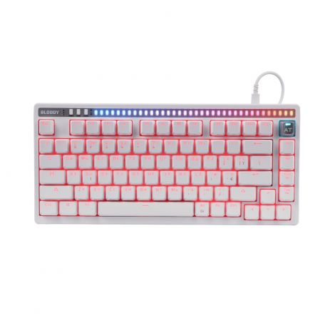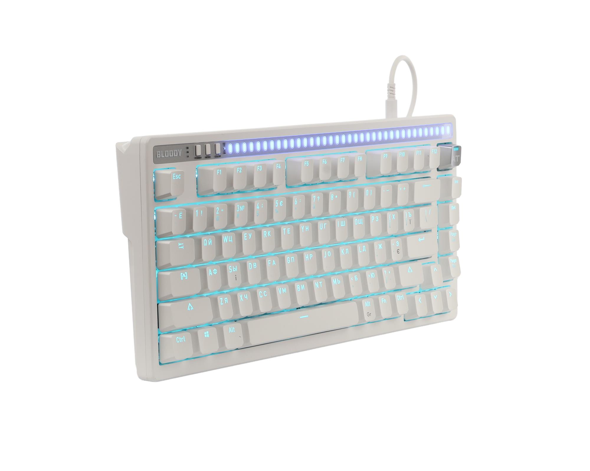 Перша ігрова клавіатура Bloody з унікальним RGB-підсвічуванням, яке реагує на голос. Компактний формат і ефективні механічні перемикачі в ексклюзивному дизайні. Особливості Перемикачі Alpha. Точно налаштовані точки спрацьовування і зусилля виводять ігровий процес на новий рівень завдяки неперевершеній швидкості і тактильному зворотному зв’язку 4 профілі змінної швидкості, що налаштовуються. Діапазон налаштування точок спрацьовування становить від 0.8 мм до 3.0 мм, що забезпечує точність, яка відповідає вашому стилю гри Система eXact Reset. Режим Hyper Z-Force: надшвидке скидання на 0.3 мм для максимальної точності. Режим Extreme X-Force: поліпшене скидання на 0.8 мм для чудового контролю. Класичний режим: скасовує функцію eXact Reset і повертається до точки скидання за замовчуванням для традиційного відгуку Тихий друк. Пориньте в безшумне натискання клавіш і отримайте максимум задоволення від гри Ігрові кейкапи з PBT. Більшість кейкапів виготовлені з PBT-матеріалів для підвищення їхньої довговічності. Кейкапи Bloody з PBT розроблені з урахуванням легкості, що забезпечує швидкий відскок 7 ефектів RGB-підсвічування. Ви можете легко перемикати 7 ефектів підсвічування RGB і регулювати яскравість відповідно до своїх уподобань