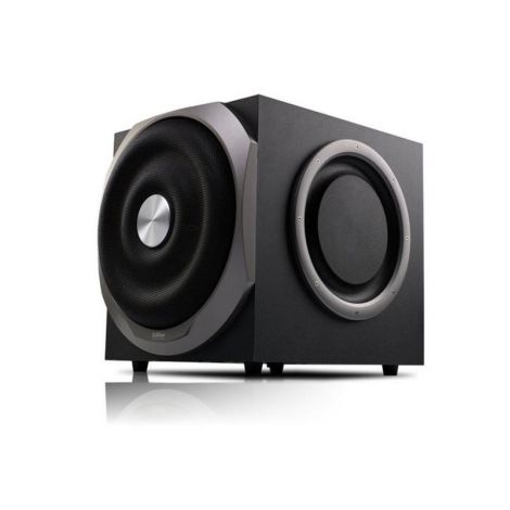 Одна из самых мощных, а возможно и самая мощная, из систем 2.1, которые нам приходилось видеть и слышать. Сабвуфер просто пугает своими размерами и басовым динамиком 10" размера. А два пассивных радиатора с двух сторон саба делают S730 настоящей индивидуальностью. Утроенная излучающая поверхность саба!!! Просто улет!!! У этой системы есть все, что Вы можете желать. Сателлиты и сабвуфер изготовлены из дерева (MDF 12mm). Магнитное экранирование сабвуфера и саттелитов. Профессионаьный сабвуфер 10". Два пассивных драйвера с двух сторон. Двухполосные сателлиты с 4" среднечастотным динамиком и с оригинальным твиттером. Микропроцессорное управление настройками. Коммутируемый вход на 2 источника аналоговых сигналов. Двойной (проводной и беспроводный) пульт ДУ. Проводной пульт с LCD дисплеем. Выход на наушники на проводном ДУ. Торроидальный трансформатор блока питания повышенной мощности. Встроенный цифровой декодер и цифровые входы (оптика и коаксиал). 3.5” среднечастотные динамики сателлитов. 25 мм шелковые купольные ВЧ динамики – твитеры Разделительный фильтр – кроссовер 2-го порядка 75 W RMS сателлиты, что больше, чем многие 2.0 мультимедиа системы полноформатные сателлиты, рассчитанные для работе во всем диапазоне частот 10” динамик сабвуфера обеспечивает ударный бас с мощностью 150 W RMS большой радиатор позволяет безопасно рассеивать потребляемую мощность разработанный специально для этой модели корпус сабвуфера способствует высокой разборчивости и качества баса хорошо задемпфированный корпус исключает вибрации данная система массивна – ее вес составляет 23 кг пассивные радиаторы способствуют звучанию глубокого баса, увеличивая площадь излучения в 3 раза усилитель содержит 4 мощных интегральных схемы TDA7294 и 6 схем предварительного усиления NE5532 огромную мощность поддерживают 32000 uF конденсаторов фильтра питания ЦАП с частотой предобразования 24 bit/96kHz совершенно новая технология производства, базируется на опыте производства предшествующих моделей большой монохромный LCD дисплей облегчает процесс управления системой дисплей имеет 7 градаций яркости ИК управление облегчено визуальным контролем на дисплее управление громкостью имеет 50 градаций, что позволяет точно установить необходимый уровень режим Boost адаптирует громкость в широком диапазоне уровней сигнала тембры ВЧ и НЧ имеют по 12 градаций, сабвуфер – 9, баланс – 18 раздельные входы имеют разную чувствительность для лучшего согласования поддерживается оптический и коаксиальный цифровые входы