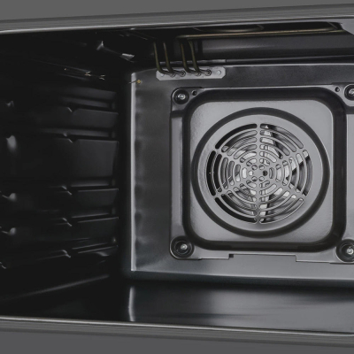 Максимальна потужність підключення складає 2900 Вт, що дозволяє пристрою швидко виходити на робочі температури. Стандартна напруга підключення — 230 В. Знімні направляючі забезпечують простоту очищення внутрішнього простору та дозволяють комфортно розміщувати страви на різній висоті.