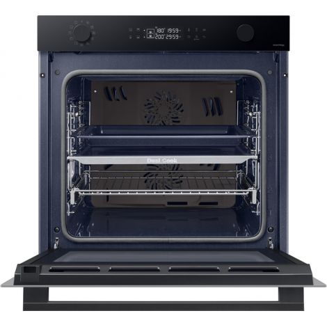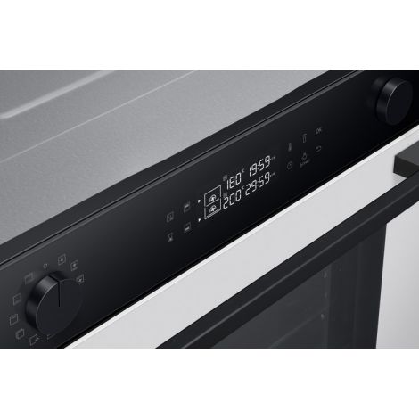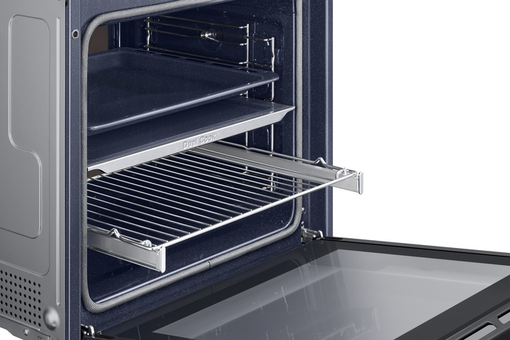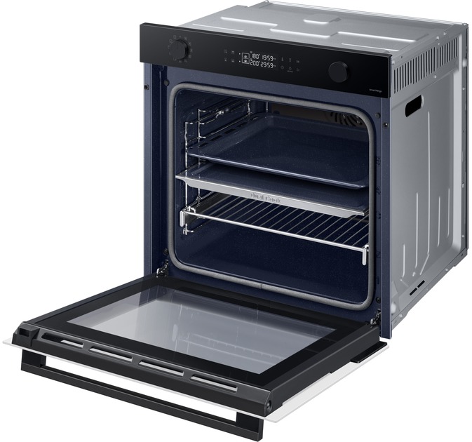 Одна піч, три способи використання Виберіть спосіб приготування різних страв, щоб досягти оптимальних результатів. Верхня та нижня зони Dual Cook працюють незалежно одна від одної або разом. Використовуйте верхню зону для приготування невеликих страв, обидві зони разом, щоб готувати різні страви з різними налаштуваннями та досягати смачних результатів, або всю піч для приготування великих страв. Ідеально рівномірне приготування їжі Готуйте їжу більш рівномірно, не пересмажуючи та не пересушуючи її. Технологія Air Sous Vide точно визначає температуру в кожній зоні та підтримує її рівномірність протягом тривалого часу. Таким чином, всі страви ретельно просмажуються та мають ніжний та соковитий смак. Більше радощів, менше клопоту SmartThings Cooking Готові до нових вражень на власній кухні? SmartThings Cooking заощадить час і мінімізує клопоти, пов’язані з приготуванням їжі. Застосунок рекомендує персоналізовані рецепти і створює тижневий план харчування з огляду на ваші потреби. Також надає поради по приготуванню їжі і дозволяє швидко й легко робити покупки. Знадобиться бездротова мережа, обліковий запис Samsung та застосунок SmartThings. Застосунок SmartThings підтримує Android OS 8.0 (Oreo) або новішої версії, оптимізованої для смартфонів Samsung. Цей застосунок також підтримує iOS 13 або новішу версію для моделей iPhone. Застосунок SmartThings доступний в App Store та Play Store. Доступний певними мовами, зокрема англійською, французькою, німецькою, італійською та іспанською. Доступний лише у Великобританії та Німеччині. Незабаром будуть додані інші країни. Легке самоочищення Досить витрачати час і сили на миття духовки. Система каталітичного очищення дозволяє легко підтримувати чистоту духовки. Каталітична поверхня в задній частині робочої камери абсорбує жир від бризок і крапель під час приготування страв. Завдяки цьому духовка очищається сама, без жодного клопоту і дорогих мийних засобів. Закривається плавно, м’яко і безшумно Насолоджуйтеся комфортнішим процесом приготування їжі завдяки дверцятам з плавним механізмом зачинення. Завдяки цьому духовка закривається надійно, м’яко і безшумно. Шарнір забезпечує плавний рух дверцят, тому вони повільно і безшумно зачиняються, без вібрації й стуку. Готуйте набагато більше Готуйте більше страв великими порціями завдяки вмісткій духовій шафі обсягом 76 літрів. Отримуйте безліч можливостей у розвитку кулінарних здібностей у себе вдома. Тепер можна готувати багато різних страв одночасно, наприклад, для вечірки. І, звісно, духовка легко вміщує об’ємні страви, такі як величезна індичка для сімейних свят. Енергоефективність A+ без компромісів Зробіть дім енергоефективнішим. Ви можете використовувати весь обсяг духової шафи й насолоджуватися винятковою енергоефективністю класу А+ в ECO-режимі. У такий спосіб ви використовуєте меншу потужність, зберігаючи при цьому великий і гнучкий простір духової шафи для власних потреб. Щобільше, цей режим зменшує шкідливі викиди CO2. Висувне деко Тепер діставати страви з духовки набагато легше. Телескопічні напрямні дозволяють легко діставати великі або важкі сковорідки. Телескопічні напрямні створюють набагато менше тертя, тому духовку набагато легше завантажувати та вивантажувати. І ви зможете легко змащувати, перевертати та приправляти страви.