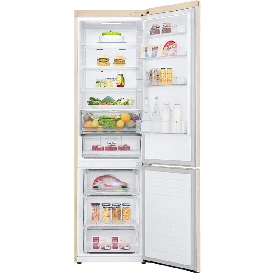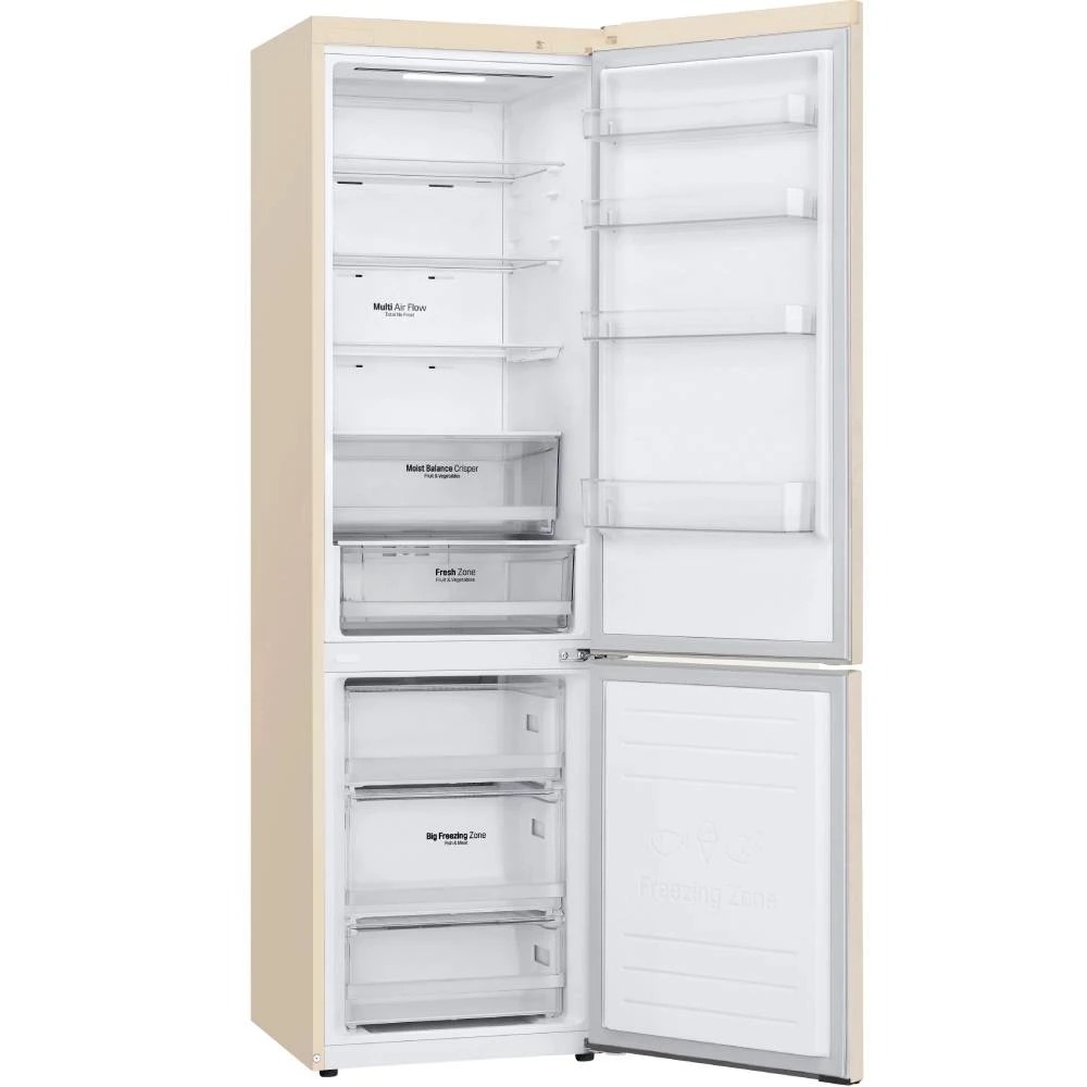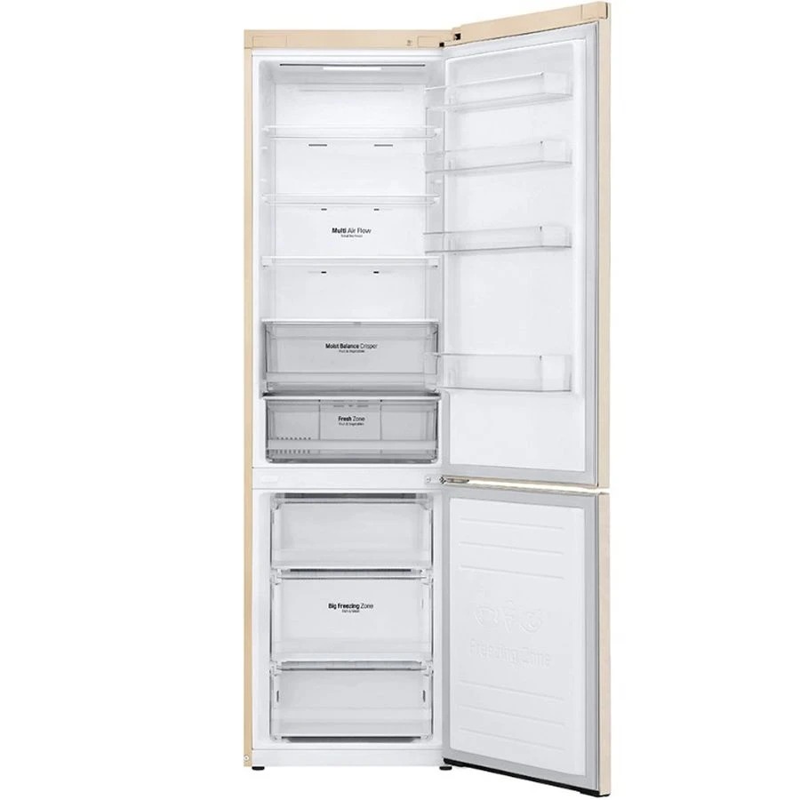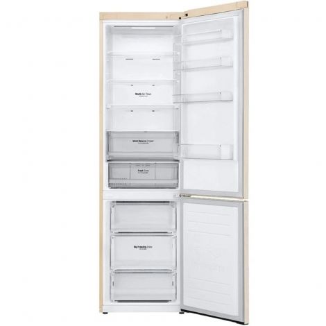 Технологія DoorCooling+ До 32% швидше та рівномірніше охолодження в будь-якому відсіку холодильника Вентиляційні отвори, розташовані в передній частині холодильника, допомагають підтримувати температуру на належному рівні, щоб продукти залишалися свіжими. Тиха робота Рівень шуму в нових холодильниках LG DoorCooling+ 36 дБ, що на 25% нижче, ніж у попередніх моделях. Тиха та надійна робота, щоб нічого не порушувало Вашого спокою вдома. Оптимальний рівень вологості За допомогою простого перемикача FRESHBalancer легко підтримувати оптимальний рівень вашої вологості. фрукти та овочі. Клас енергоефективності А++ Холодильник LG з інверторним компресором має рівень енергоефективності А++ і споживає на 32% менше електроенергії. Multi Air Flow Холодне повітря циркулює через усі повітряні клапани та рівномірно охолоджує холодильне відділення. Технологію циркуляції холодного повітря значно поліпшено порівняно з тими, що працюють на холодильниках системі Total No Frost. Total No Frost Холодильники з технологією LG Total No Frost більше не потребують розморожування холодильної та морозильної камер. Moist Balance Crisper Завдяки комірчастій структурі кришки Moist Balance Crisper конденсат накопичується в стільниках, запобігаючи потраплянню крапель у продукти. Водночас вода повільно випаровується, створюючи оптимальний рівень вологості. Це дає змогу зберегти фрукти й овочі набагато довше за збереження їхніх корисних властивостей і смакових якостей.