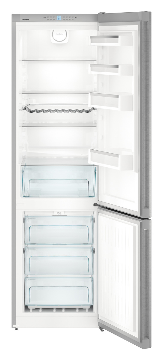Система NoFrost Благодаря использованию современных профессиональных технологий охлаждения оборудование Liebherr с системой NoFrost обеспечивает длительное хранение замороженных продуктов. Замораживание осуществляется при помощи циркуляции охлажденного воздуха и отвода избыточной влаги. В результате этого в морозильной камере не образуется лед, а замороженные продукты питания не покрываются слоем инея. С системой NoFrost Вы позабудете о необходимости оттаивания морозильной камеры. Система DuoCooling Благодаря наличию двух независимых холодильных контуров система DuoCooling позволяет точно отрегулировать температуру в холодильной и морозильной камерах комбинированного холодильника-морозильника. Также благодаря этому отсутствует воздухообмен между холодильной и морозильной камерами. Это препятствует передаче запаха и «обветриванию» хранящихся продуктов питания. Основные электронные органы управления Электронная система управления оснащена цифровым дисплеем температуры, на который выводится также информация о настройках. Полка для бутылок Полка для бутылок с привлекательным дизайном приспособлена для практичного хранения напитков. На полке можно компактно разместить бутылки.