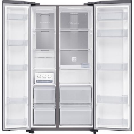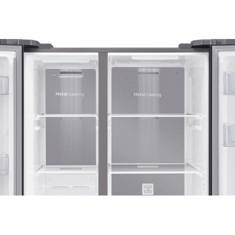 Больше пространства внутри, более бесшовный стиль снаружи технология SpaceMax Храните больше пищи с очень просторным интерьером 617 л. Его уникальная технология SpaceMax позволяет стенам быть значительно тоньше, поскольку использует минимальное количество высокоэффективной изоляции. Таким образом, он создает больше места для хранения без увеличения внешних размеров или снижения энергоэффективности. Свежие продукты на всех полках Всестороннее охлаждение Убедитесь, что вся пища правильно охлаждена - где бы она не находилась в холодильнике. Система всестороннего охлаждения постоянно проверяет температуру и выдувает холодный воздух. Этот режим охлаждает холодильник равномерно, поэтому каждый продукт питания дольше остается свежим. Долговечный и энергоэффективный Цифровой инвертор Цифровой инверторный компрессор Samsung дольше сохраняет вашу пищу с энергосбережением до 50%, а также может работать в течение 21 года непрерывно. Он автоматически регулирует свою скорость в ответ на потребность охлаждения. А его долговечность гарантируется в течение 10 лет. Гармоничный и стильный дизайн Изящный и бесшовный дизайн Придайте своему дому стильный и современный вид. Его гладкий и бесшовный дизайн глубокой глубины прекрасно впишется в габариты вашей существующей техники и шкафы для создания гармоничного интерьера кухни. Он также красивые плоские двери со встроенными ручками, которые не выступают. Ускоренное охлаждение и замораживание Metal Cooling Держите еду свежей, даже если вы часто открываете и закрываете дверь. Канал Metal Cooling в задней стенке помогает поддерживать оптимальную внутреннюю температуру. Он сохраняет холод и предотвращает потерю холодного воздуха, когда дверь открыта. И он быстро восстанавливает любые потери тепла, когда он снова закрывается. Мощное охлаждение или замораживание Мощное охлаждение или замораживание Наслаждайтесь быстрым охлаждением. При нажатии одной кнопки Power Cool продувает сильно холодный воздух в холодильник, чтобы быстро охладить продукты или любимые напитки. А Power Freeze обеспечивает быстрый взрыв холодного воздуха в морозильную камеру. Это прекрасно для замораживания или укрепления замороженных продуктов и приготовления льда. Естественный аромат продуктов без посторонних запахов дезодорирующий фильтр Храните внутреннюю часть холодильника дезодорированное и дольше сохраняйте оригинальный аромат пищи. Встроенный фильтр для дезодорации устраняет сильные запахи, так как воздух постоянно проходит через угольные фильтры. Следовательно, нет необходимости в других решениях по борьбе с запахом. Легко сохраняйте больше овощей и фруктов Коробка Vege Большая емкость Vege Box обеспечивает удобное место для хранения большого количества свежих овощей и фруктов. И потому, что это настолько большое, гораздо проще найти все, потому что они все в одном месте и легко добраться, так что вы можете наслаждаться ими чаще, не занимая ценного кухонного пространства.